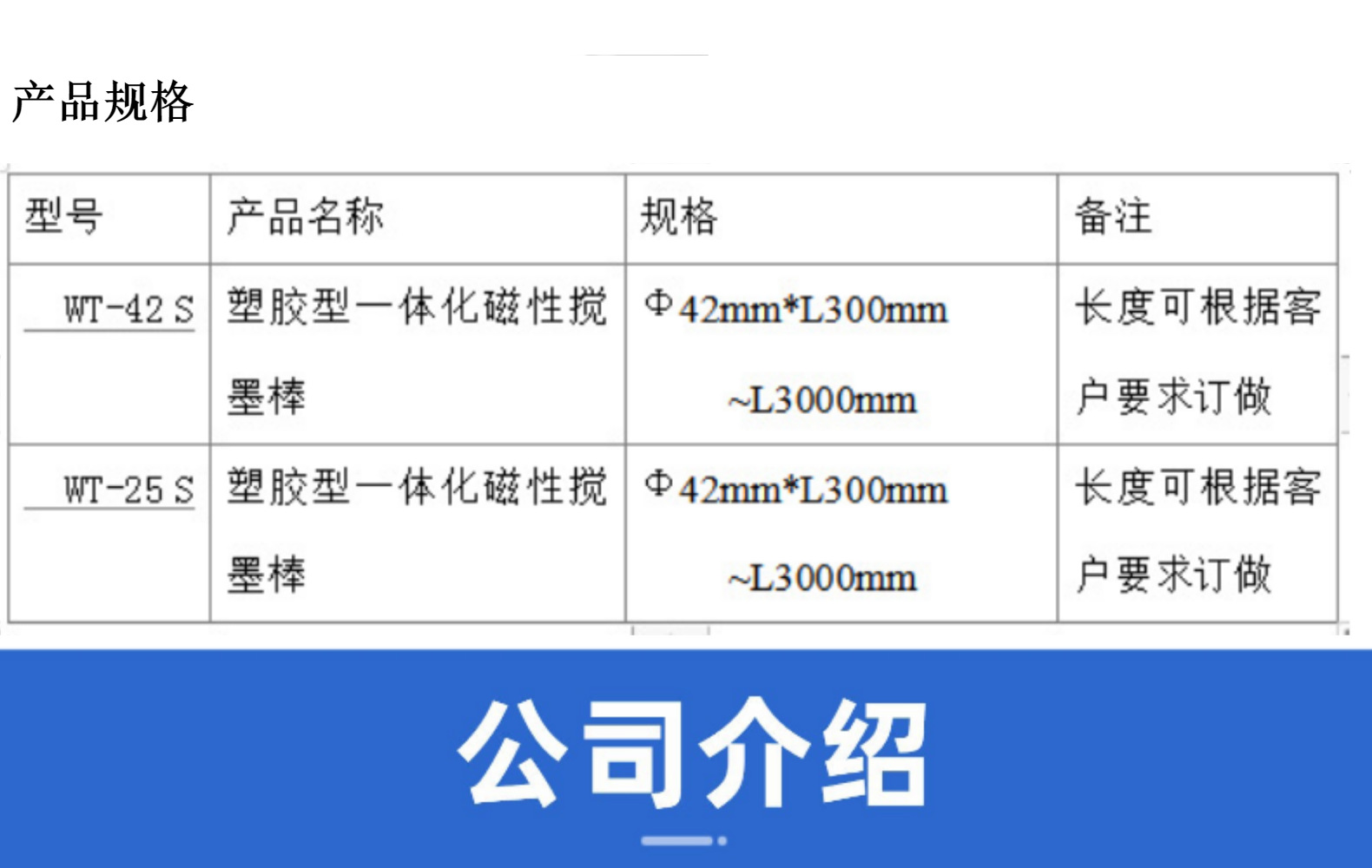 Φ42*L300mm; Φ42*L400mm; Φ42*L500mm; Φ42*L600mm; Φ42*L700mm; Φ42*L800mm; Φ42*L900mm; Φ42*L1000mm; Φ42*L1100mm; Φ42*L1200mm; Φ42*L1300mm; Φ42*L1400mm