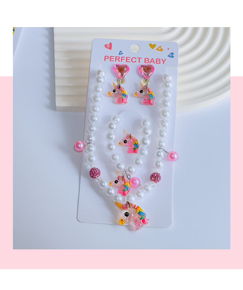 Amazon новое детское ожерелье с единорогом, комплект из бисера, детские украшения своими руками, кольцо для девочек, ожерелье, оптовая продажа