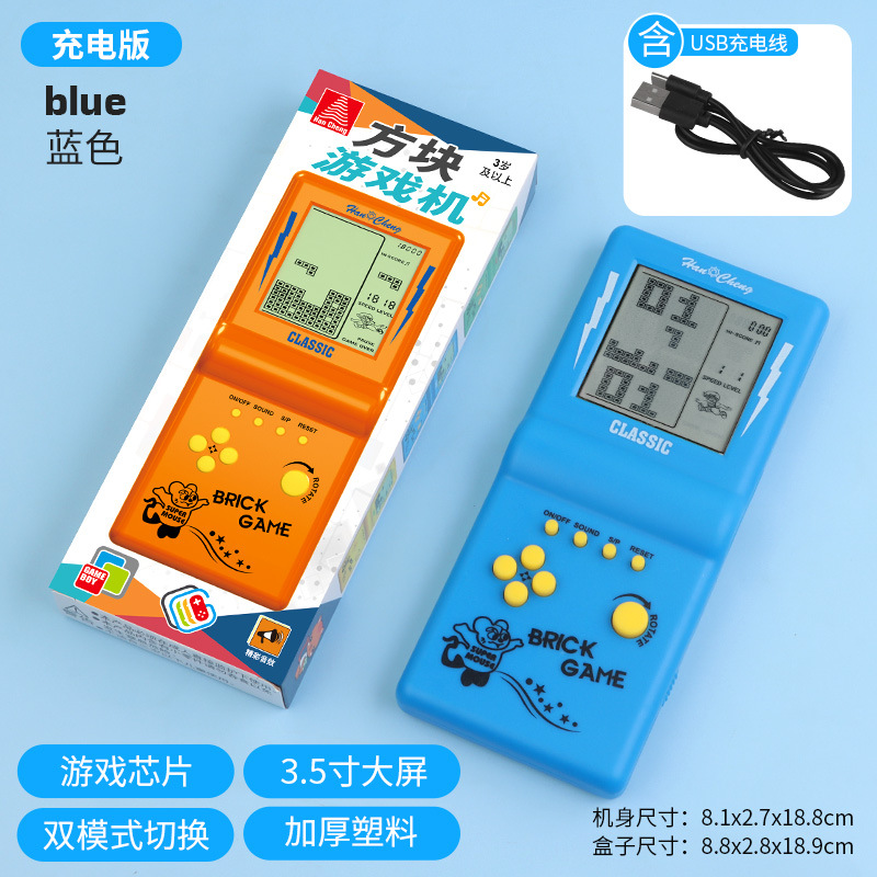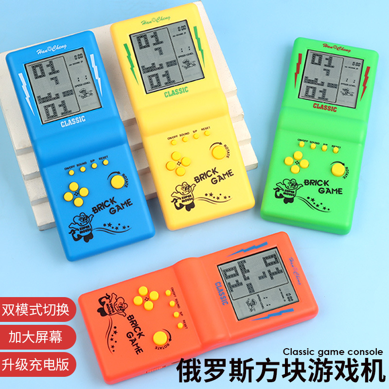 Игровая консоль «Тетрис» с большим экраном, перезаряжаемая портативная игровая приставка в старом стиле, детская электронная игрушка