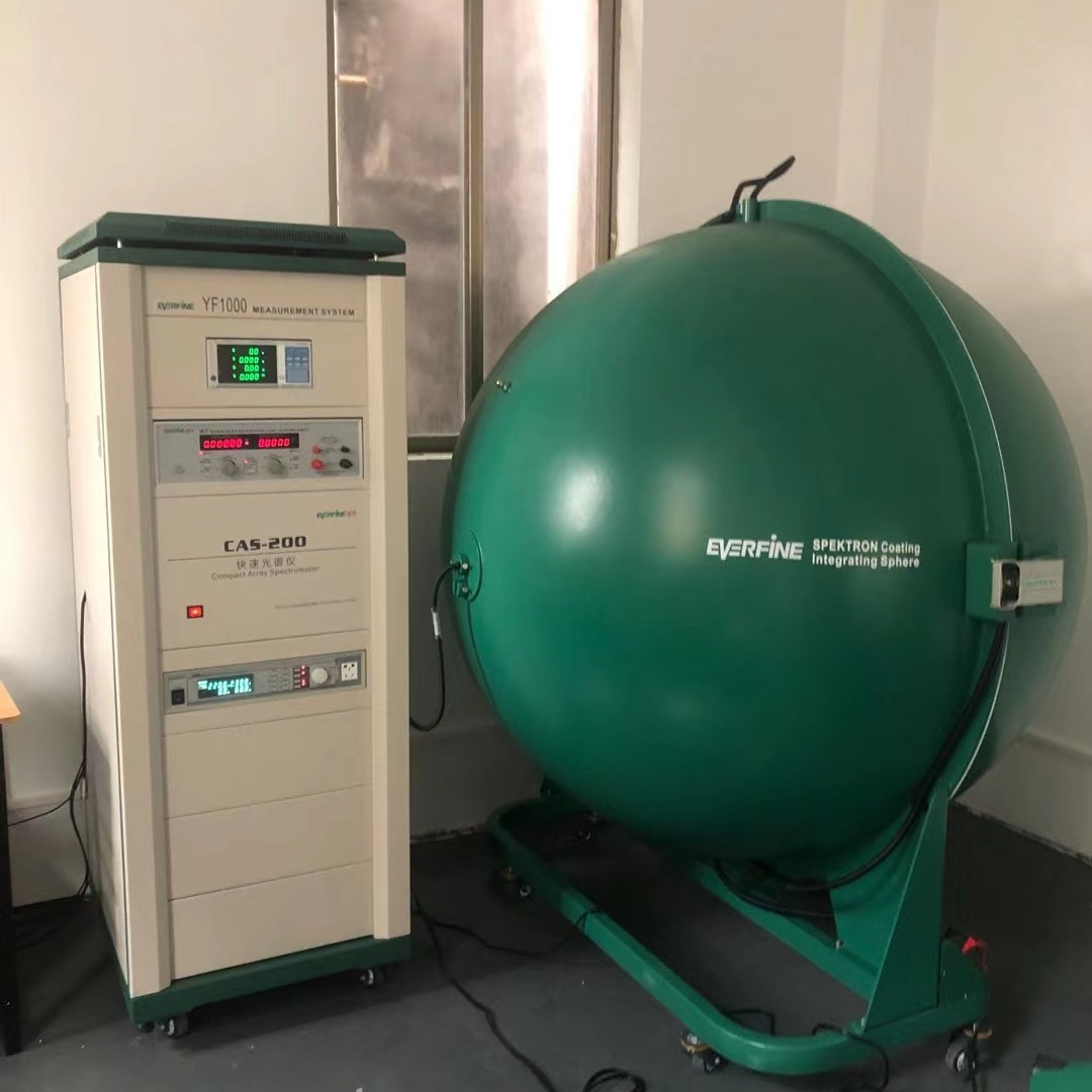 - 基本测量功能:测试相对光谱功率分布,色品坐标,主波长,峰值波长,光谱纯度,色温,显色指数,半宽度,光通量(配积分球),辐射功率,红色比,色容差等参数,满足国际照明委员会CIE 对光和颜色测量要求。