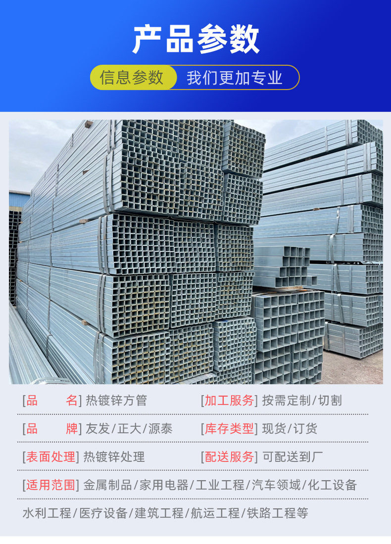 Горячеоцинкованные квадратные трубы 40*40/50*50, производитель оцинкованных квадратных труб, материал Q235 30*30, горячеоцинкованные квадратные трубы в наличии.