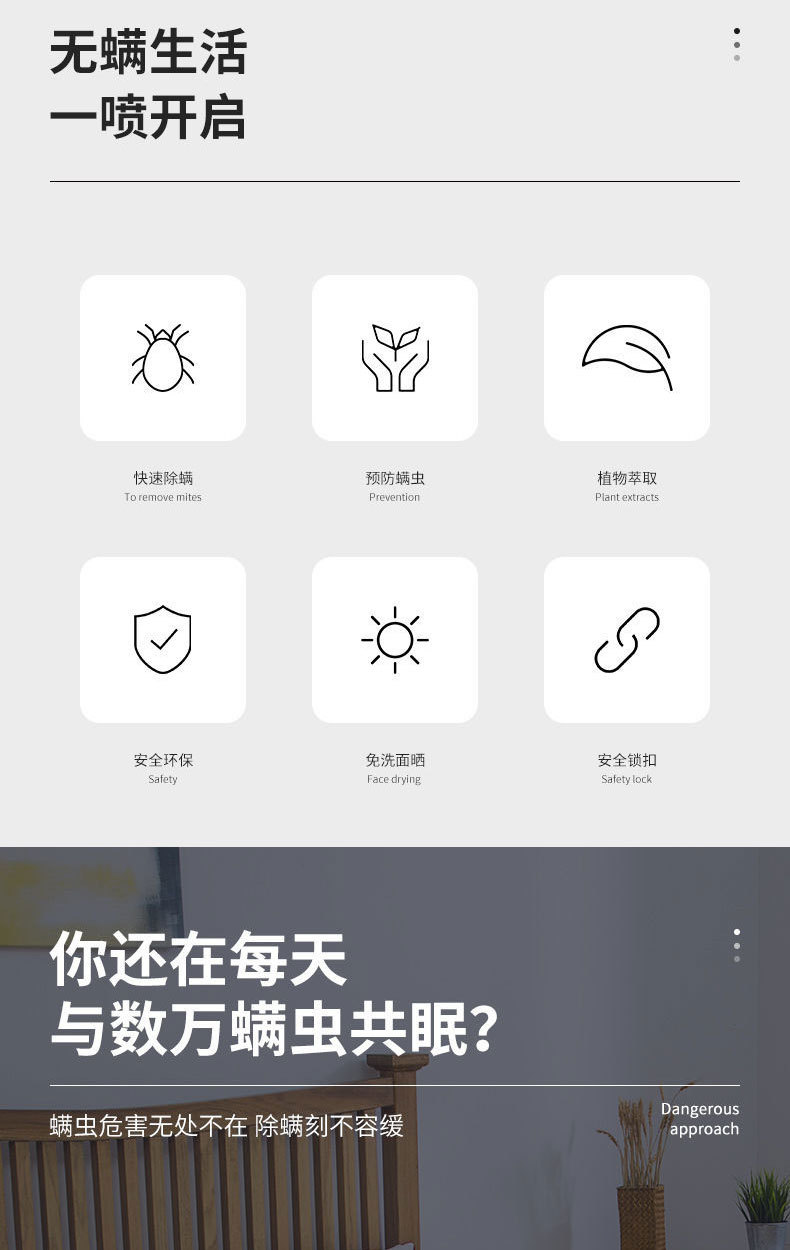 Спрей для удаления клещей для домашнего использования, для кроватей, одежды, дезодорации и стерилизации домашних животных, антибактериальный.