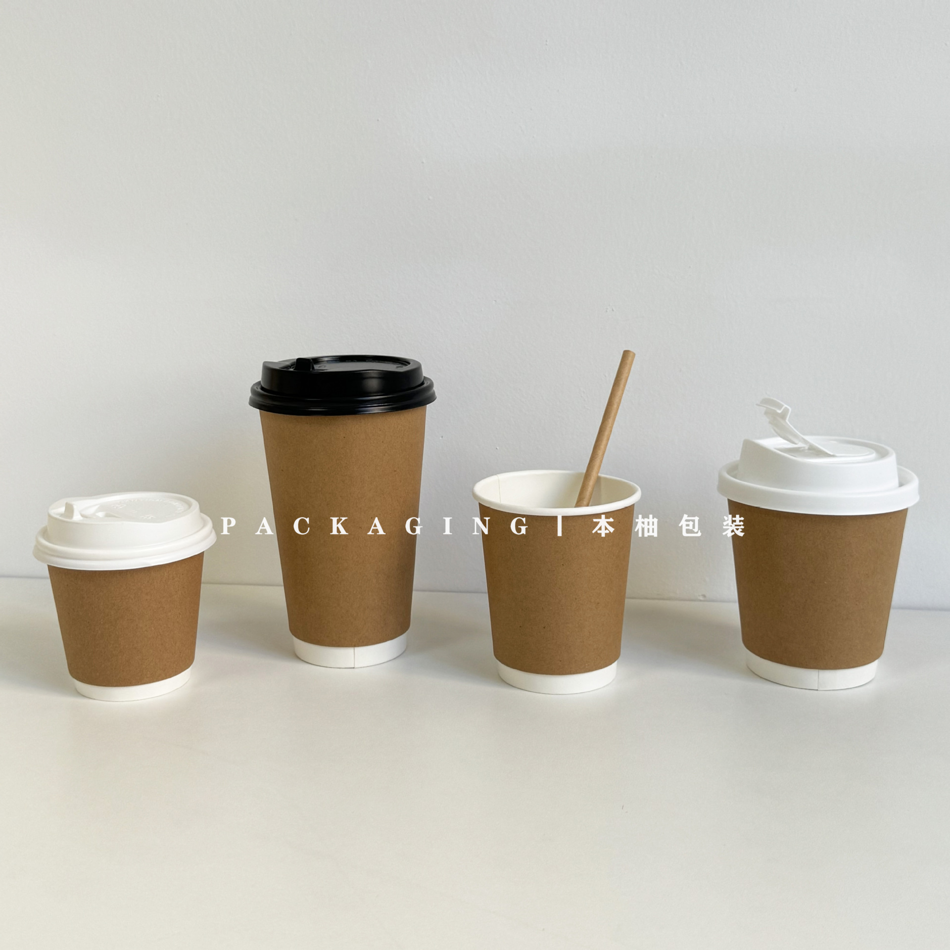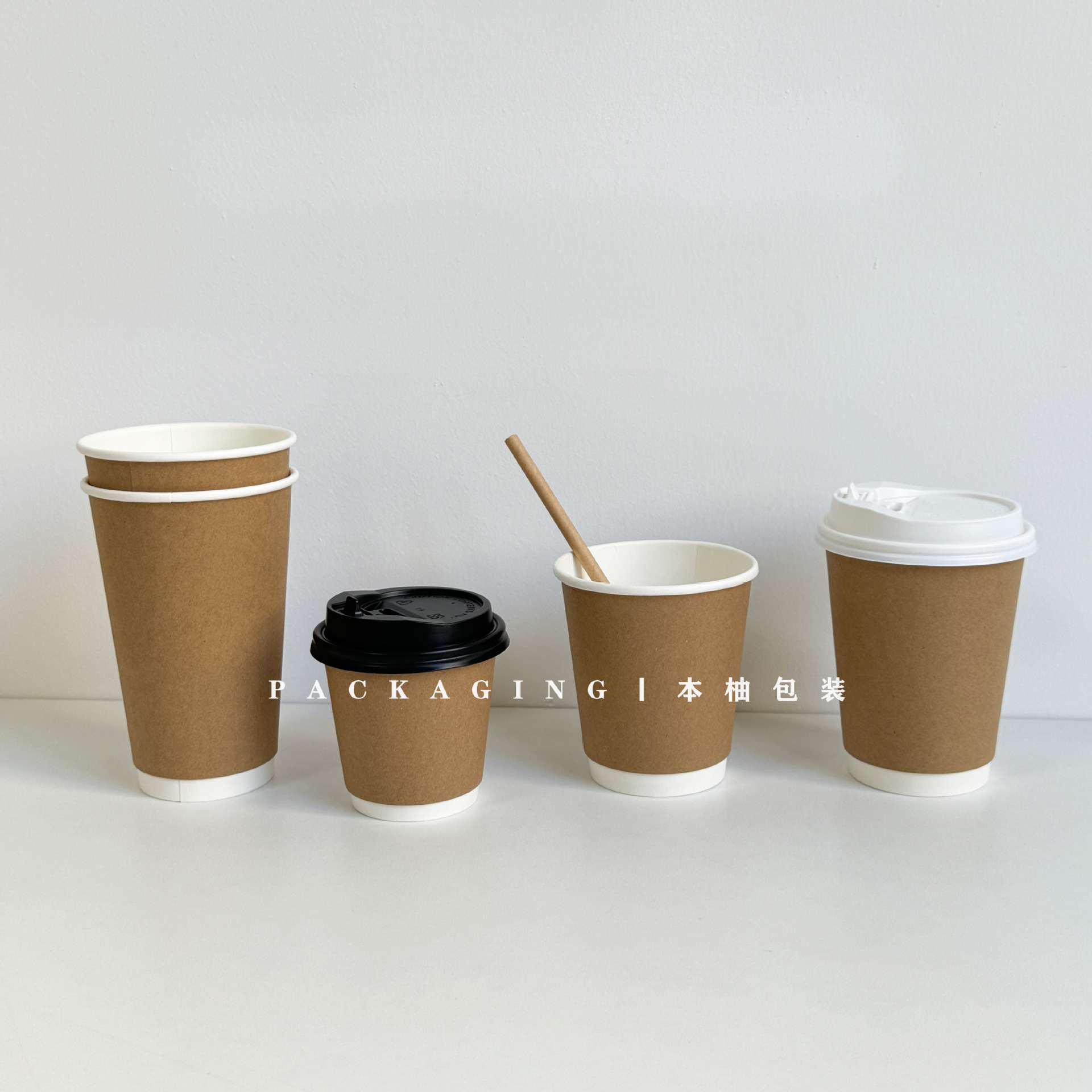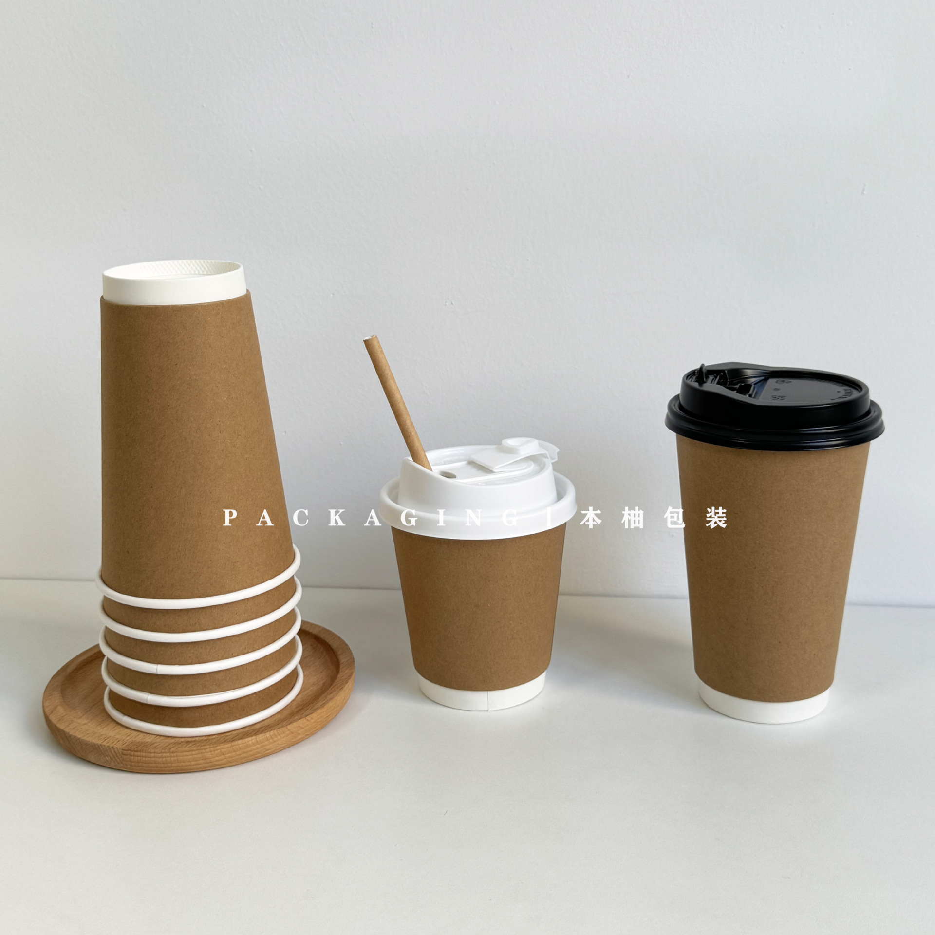Двухслойные бумажные стаканчики из коровьей кожи с перфорацией, 6.5/8/10/12/16/22 унции, для кофе, молочного чая, горячих напитков, упаковка для выноса