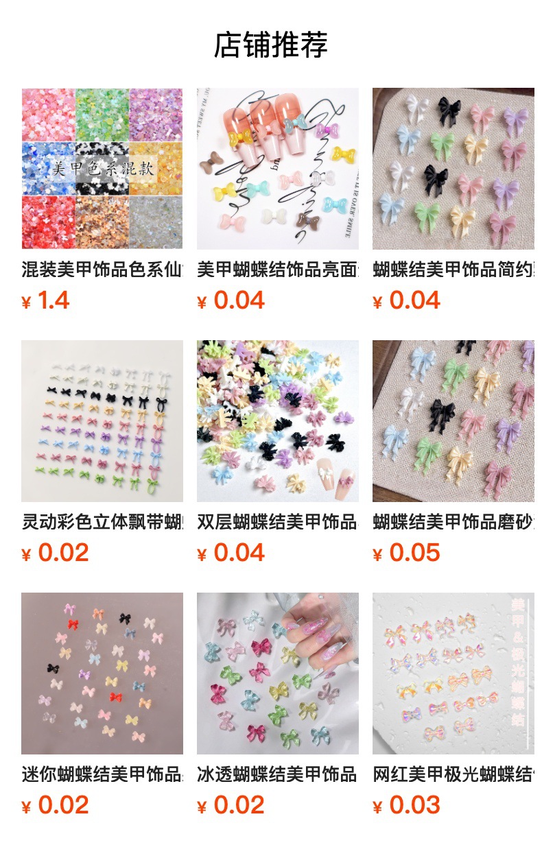 Аксессуары для нейл-арта: бантики из матовой ленты, бантики-галстуки, стразы из смолы для ногтей, накладные украшения для ногтей оптом