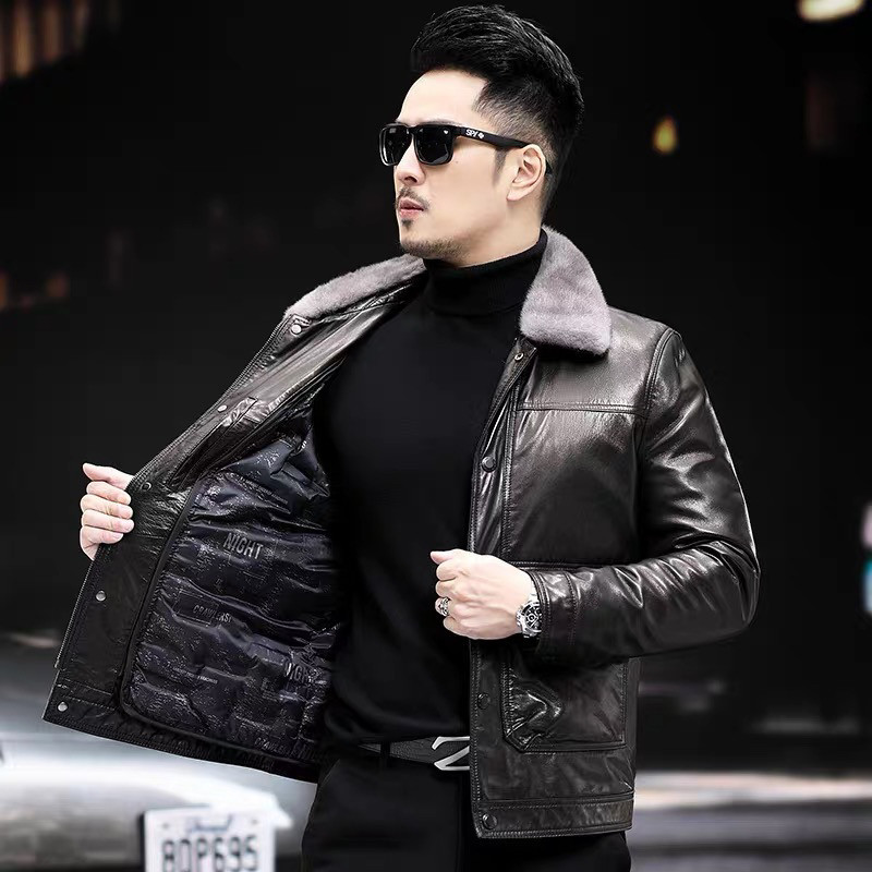 Весенний и осенний новый кожаный кожаный костюм мужская голова кожаная куртка деловая мужская мода дикие пальто мотоциклетная кожаная одежда