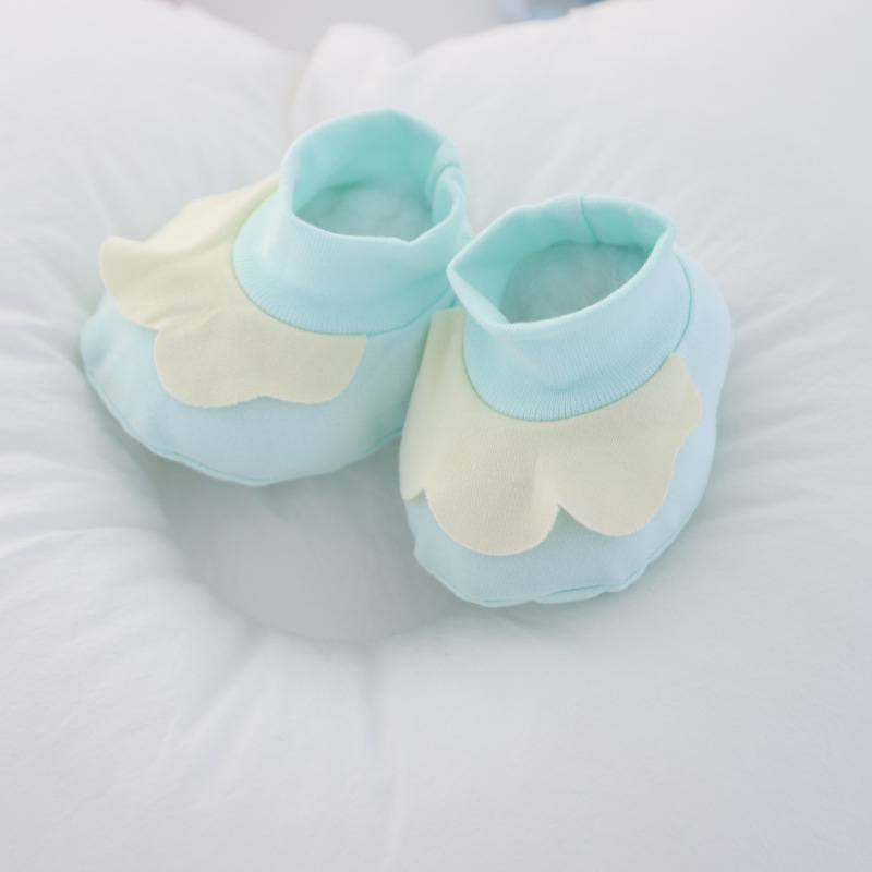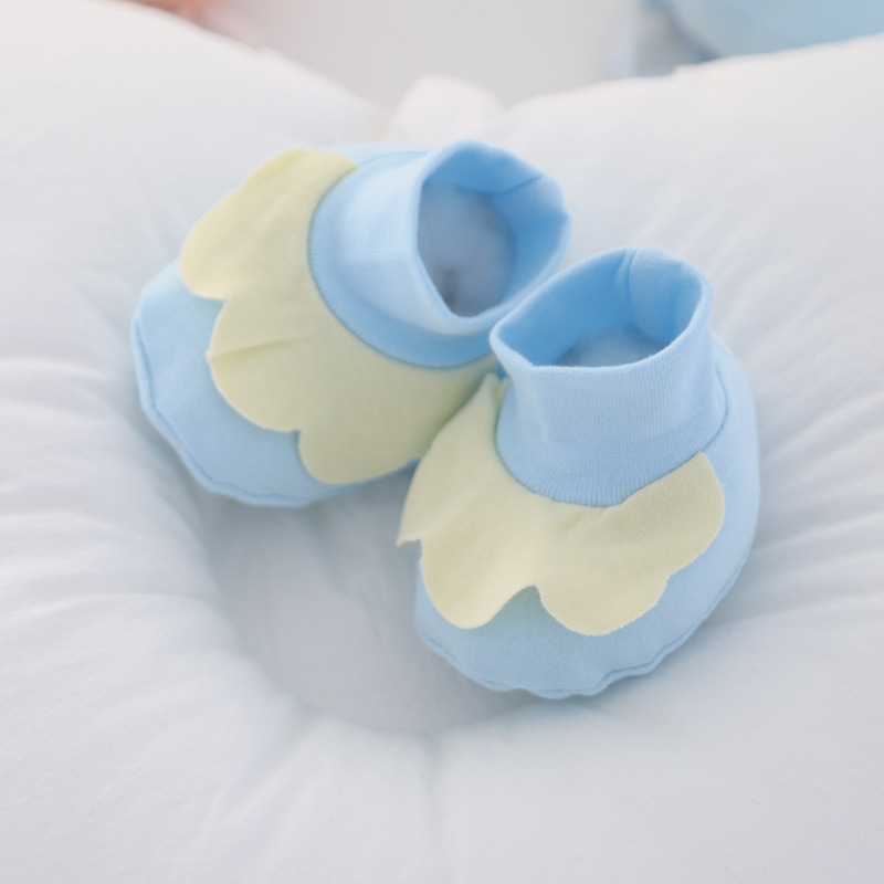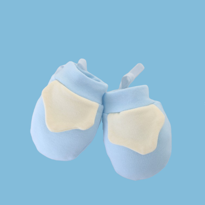 婴儿防抓脸手套,棉质,立体式上添加。手套有抽绳,脚套没有。0-6月可用