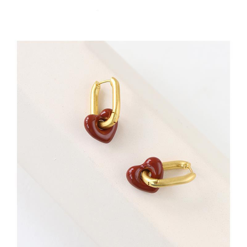Американский Горячий Бренд Интернет Знаменитости Эмаль Красная Любовь Серьги ins Французский Старинные Серебряные Серьги Pin