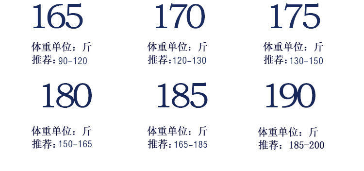 165 [Рекомендуется 90-115 кг]; 170 [Рекомендуется 115-130 кг]; 175 [Рекомендуется 130-150 кг]; 180 [Рекомендуется 150-170 кг]; 185 [Рекомендуется 170-185 кг]; 190 [Рекомендуется 185-200 кг]