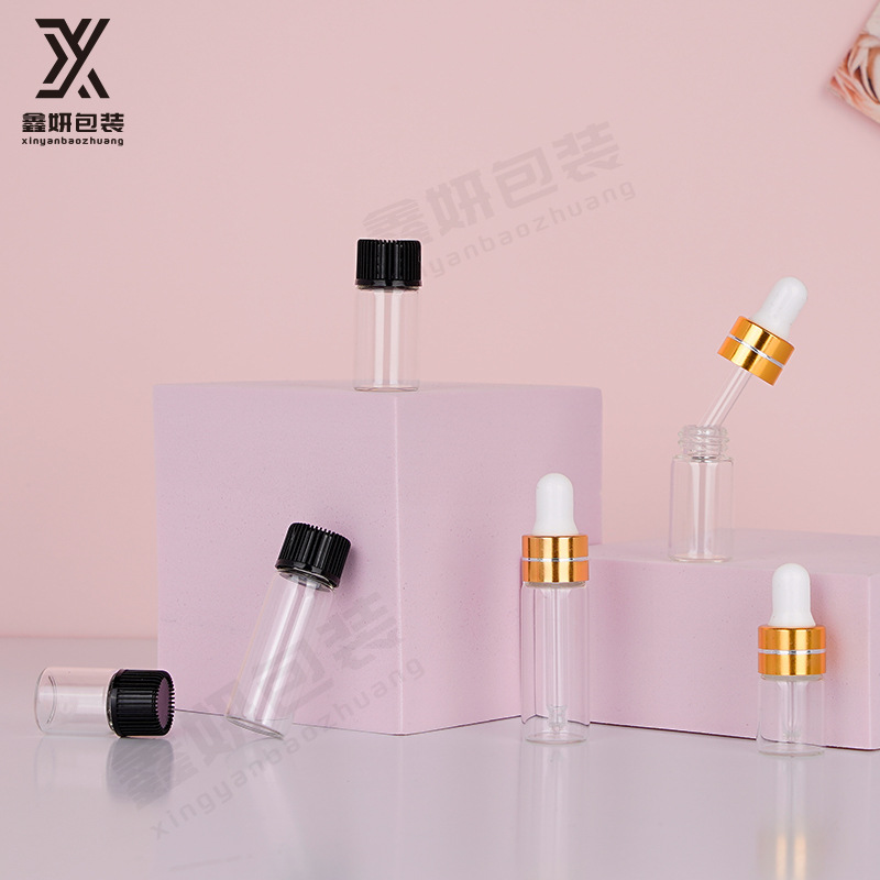 В наличии 1 мл коричневая бутылка эфирного масла 2 мл прозрачная стеклянная бутылка с разделенным эфирным маслом пробная бутылка для образцов маленькая винтовая бутылка Тяговая трубка