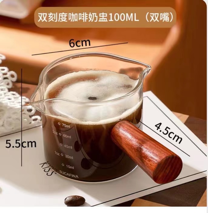 Боросиликатного стекла небольшой чашки молока бытовой мини-чашка кофе со шкалой, деревянная ручка молоко может, своевременная доставка
