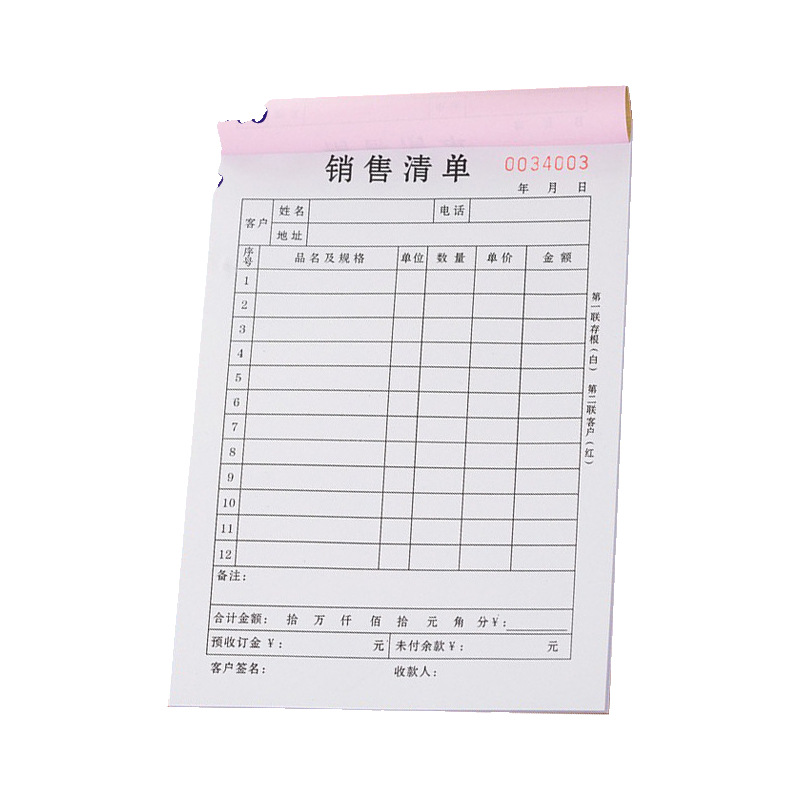 Двух- или трехчастные квитанции, самокопирующиеся документы, формы доставки и приемки, машинопечатные квитанции, накладные, квитанции с индивидуальной печатью.