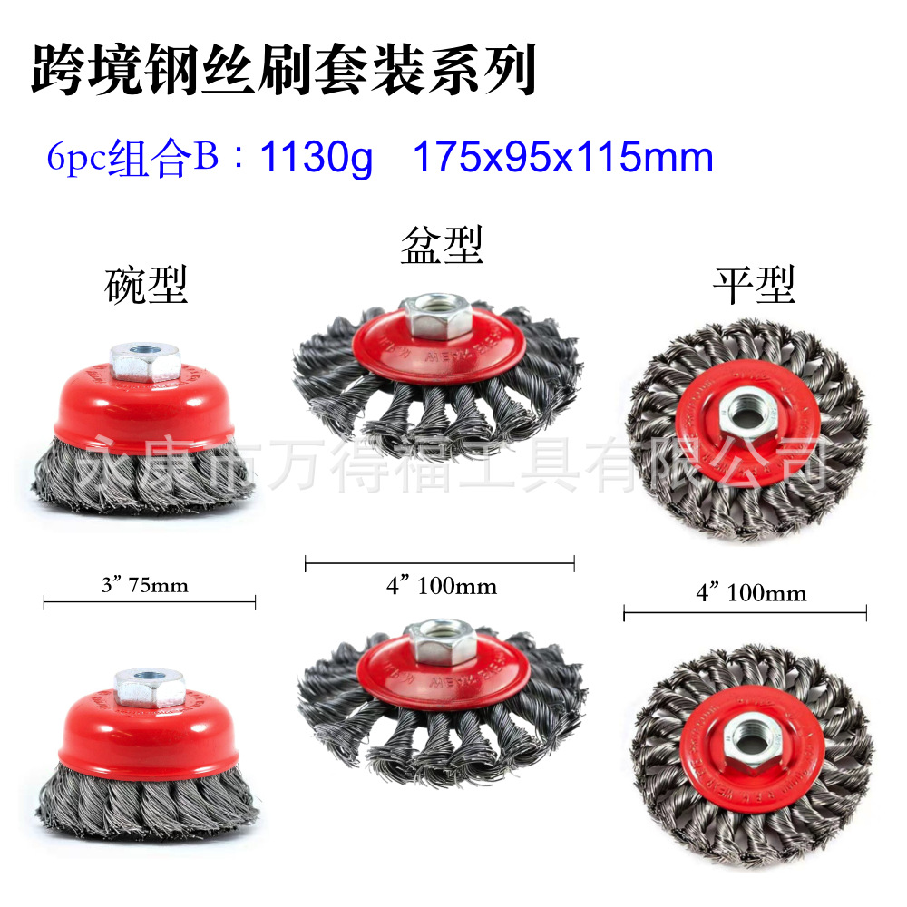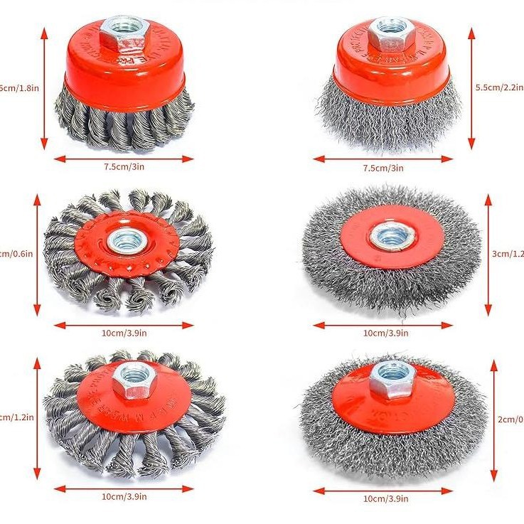 Трансграничный 4/6PC излом 5/8-11 арматурная проволока щетка 3 дюйма в форме чаши 4 дюйма в форме таза стального колеса для удаления ржавчины набор щеток