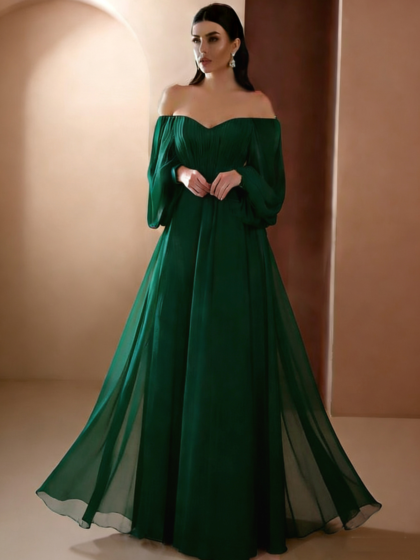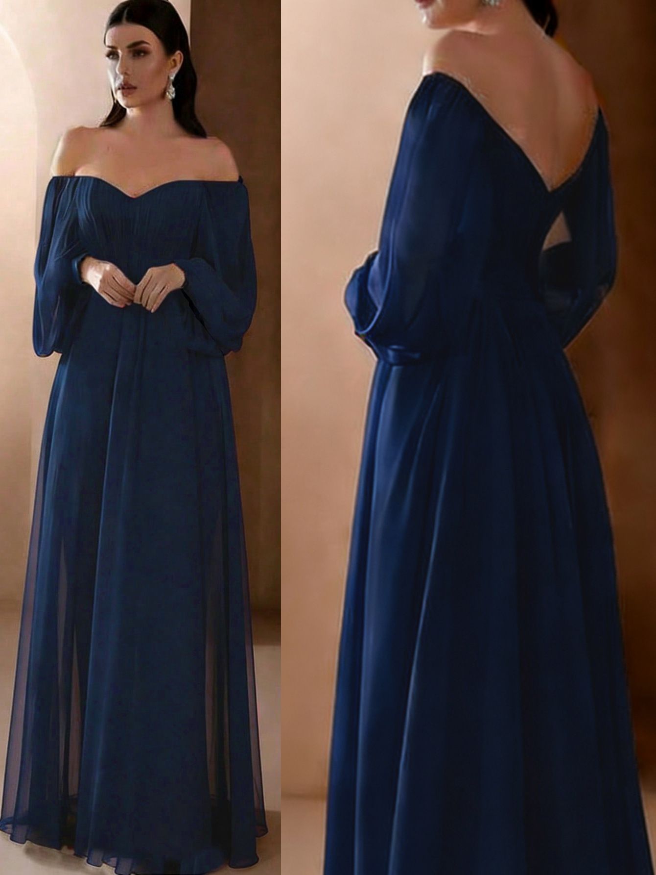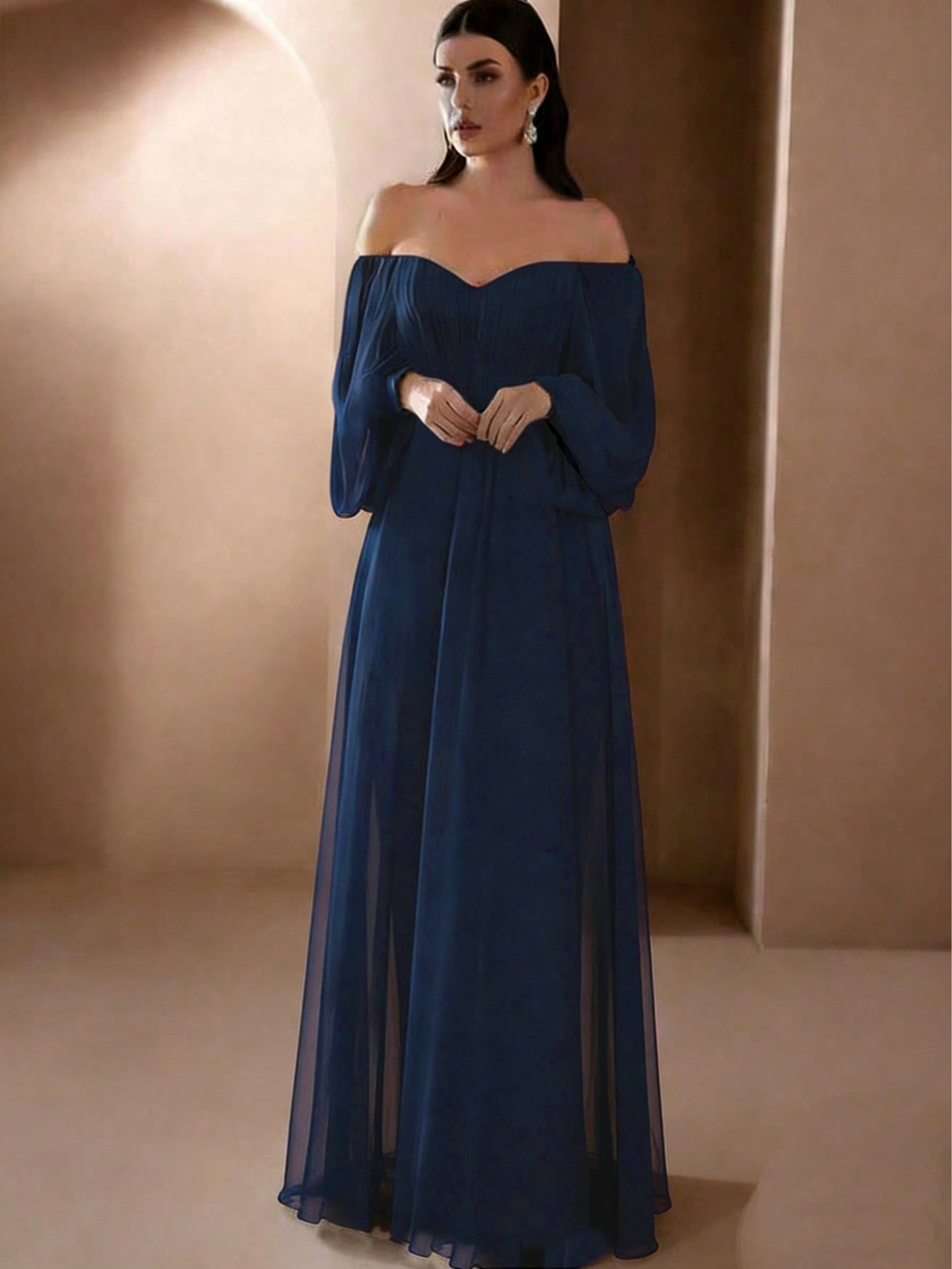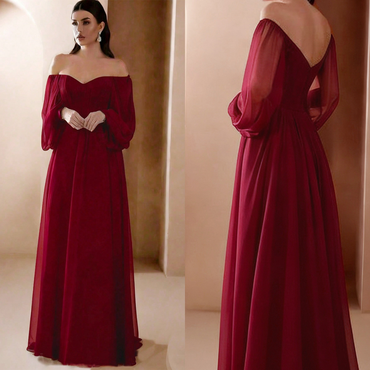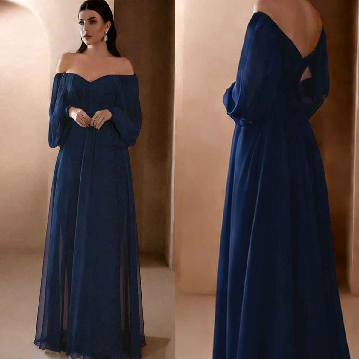 Европейская и американская внешняя торговля новая женская одежда Amazon новое платье с длинным рукавом и воротником в одно слово однотонное шифоновое платье