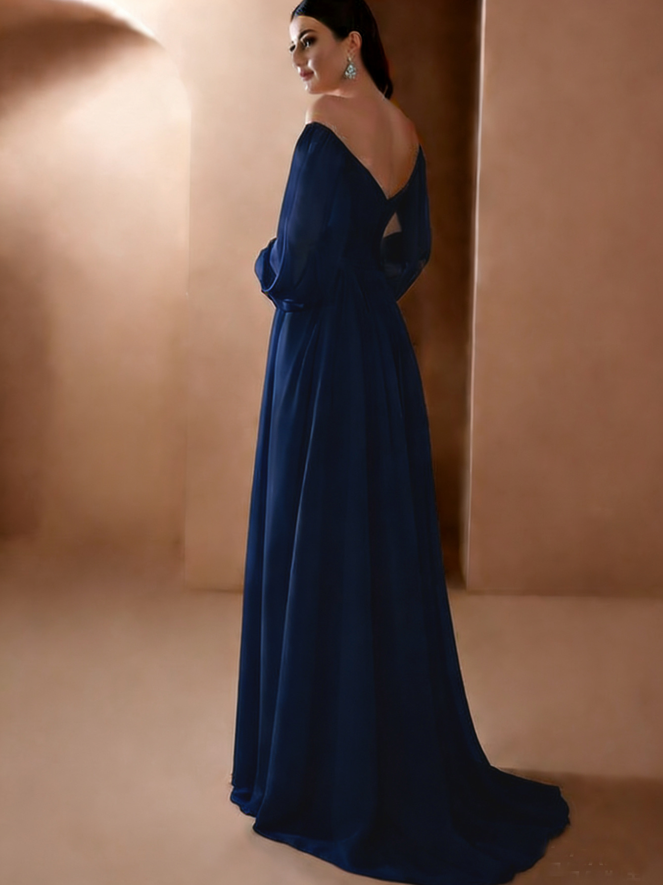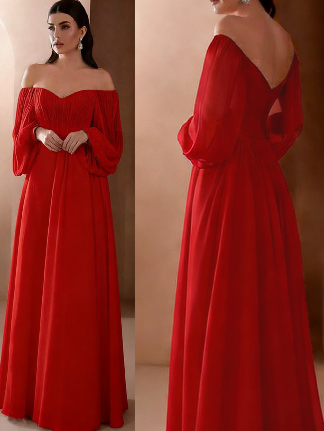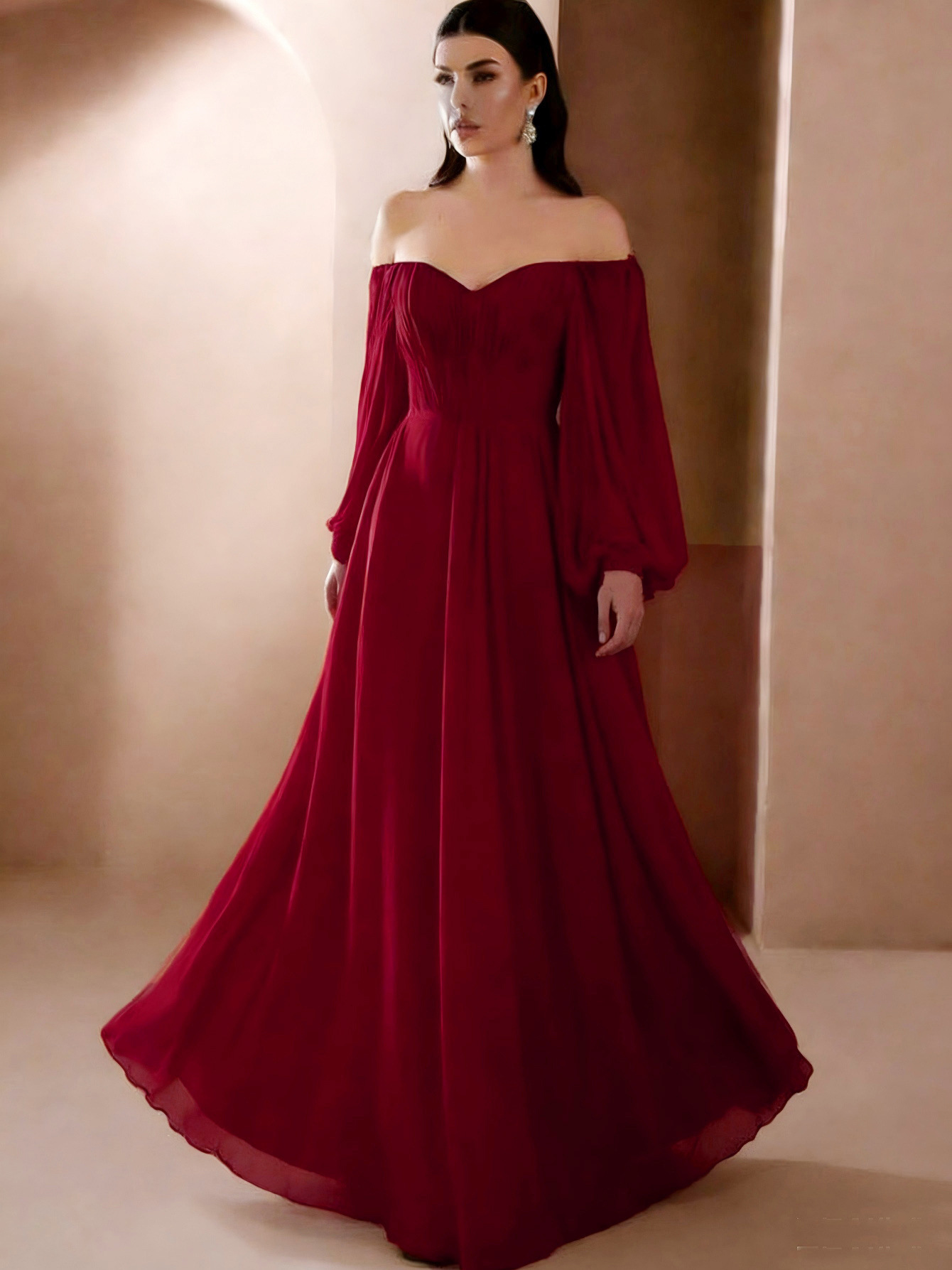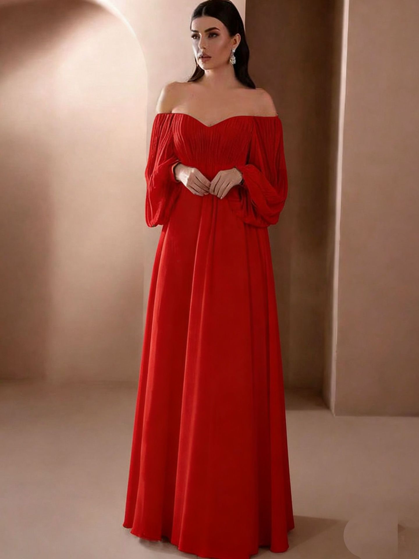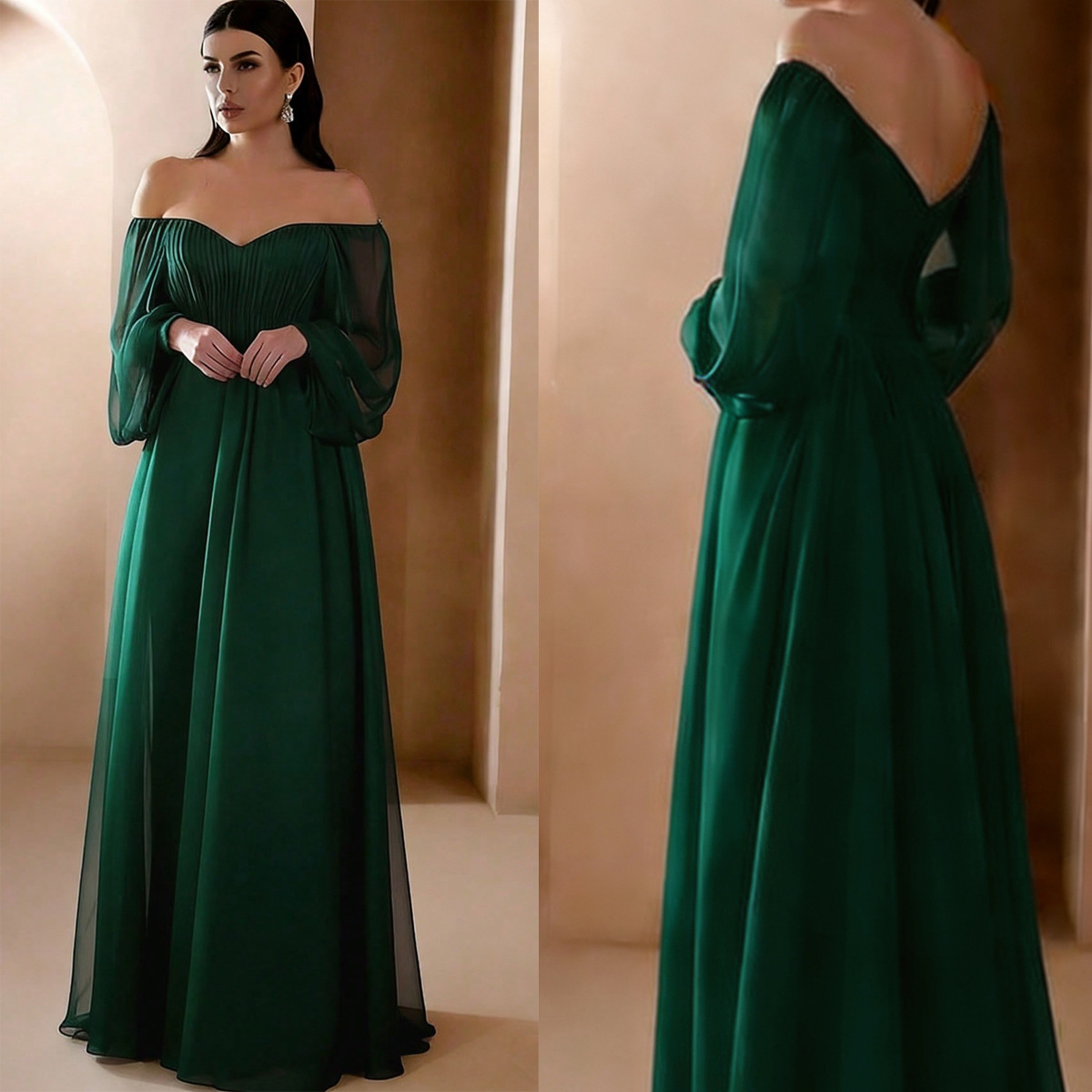 Европейская и американская внешняя торговля новая женская одежда Amazon новое платье с длинным рукавом и воротником в одно слово однотонное шифоновое платье