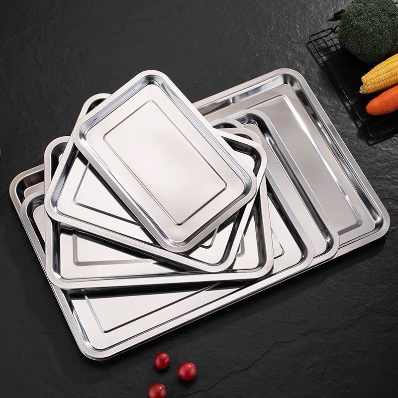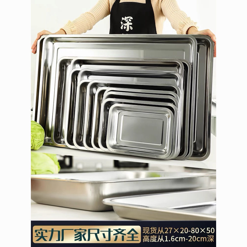 Поднос из нержавеющей стали для дома и коммерческого использования, перфорированный поднос для чая, утолщенный поднос для фруктов, глубокая тарелка для рыбы, прямоугольный, для международной торговли.