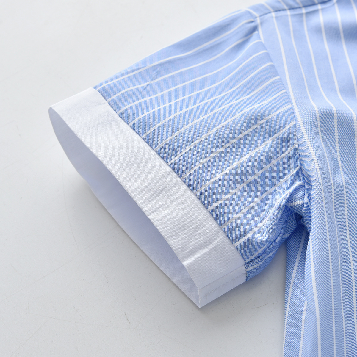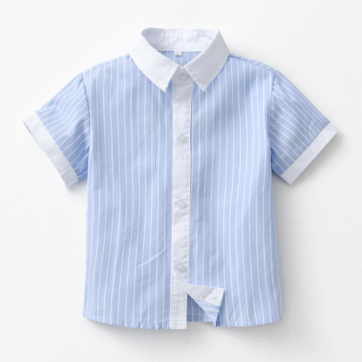 INS Европейская и американская новинка, короткая рубашка в полоску для мальчиков, детский летний кардиган с коротким рукавом и сокровищами маленького и среднего размера, Формальное верхнее платье