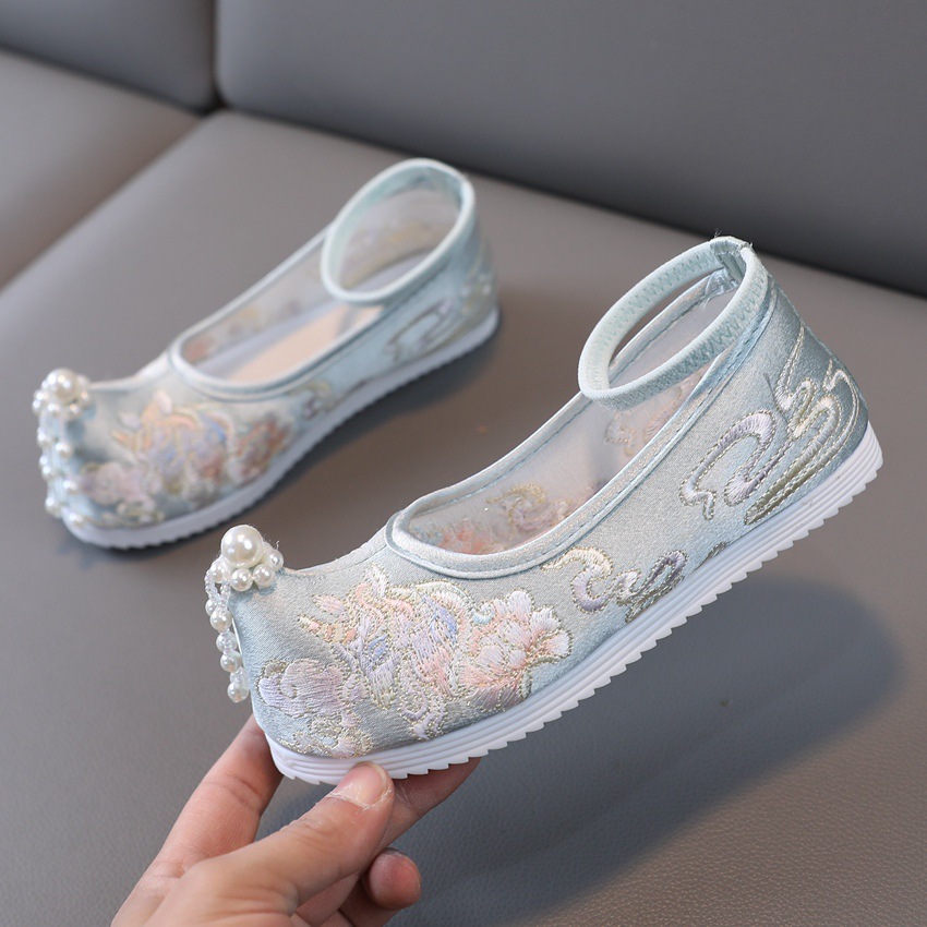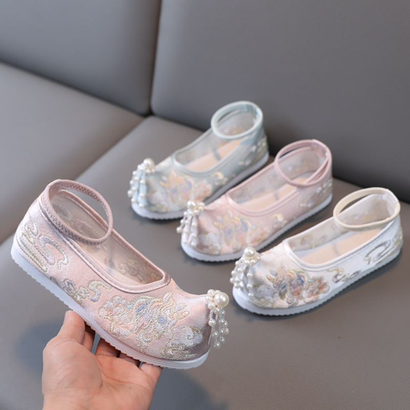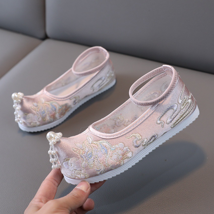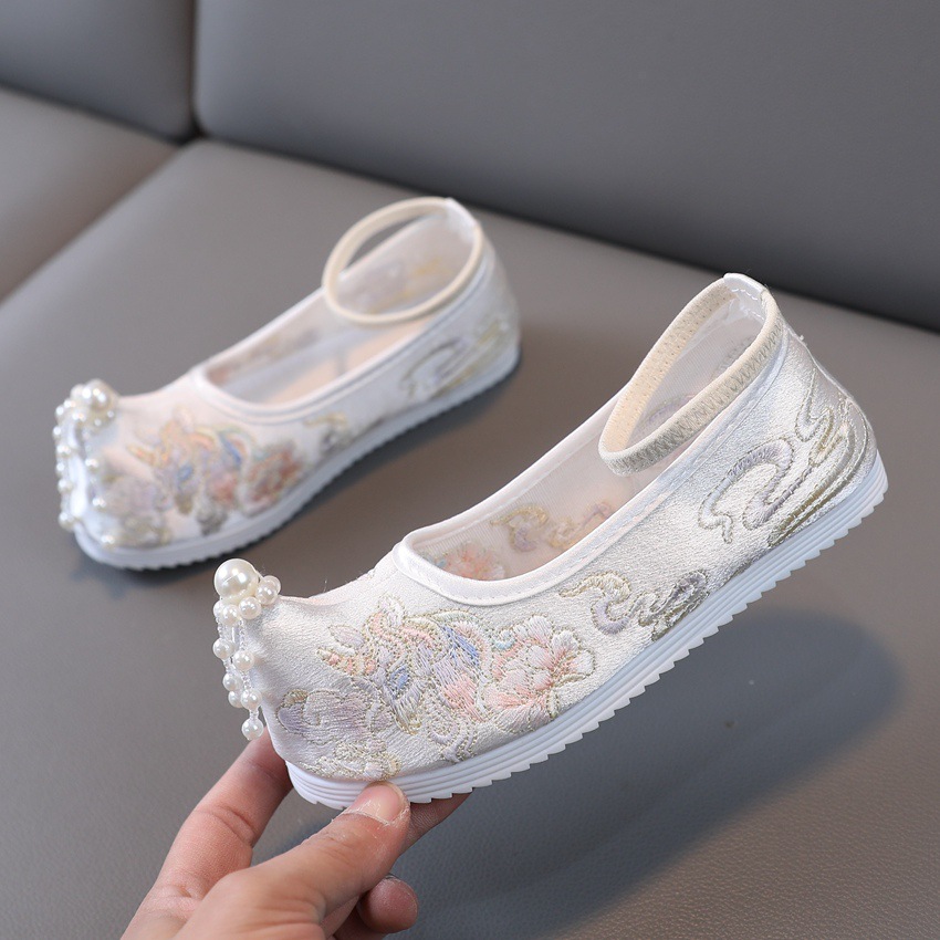 Древняя одежда с вышивкой единорога, обувь ханьфу, обувь с вышивкой для девочек, старинная Пекинская Тканевая обувь, Весенняя детская танцевальная обувь в китайском стиле