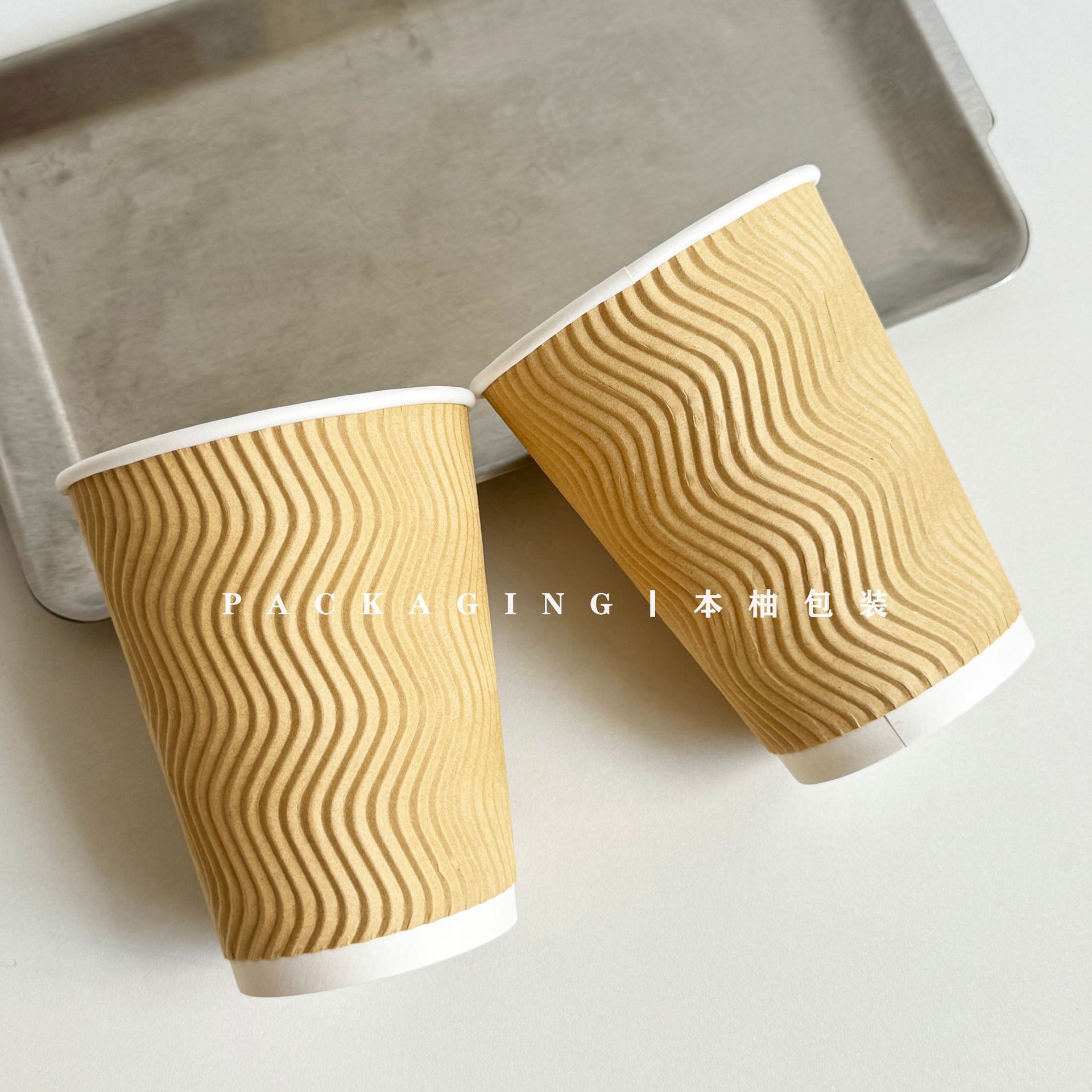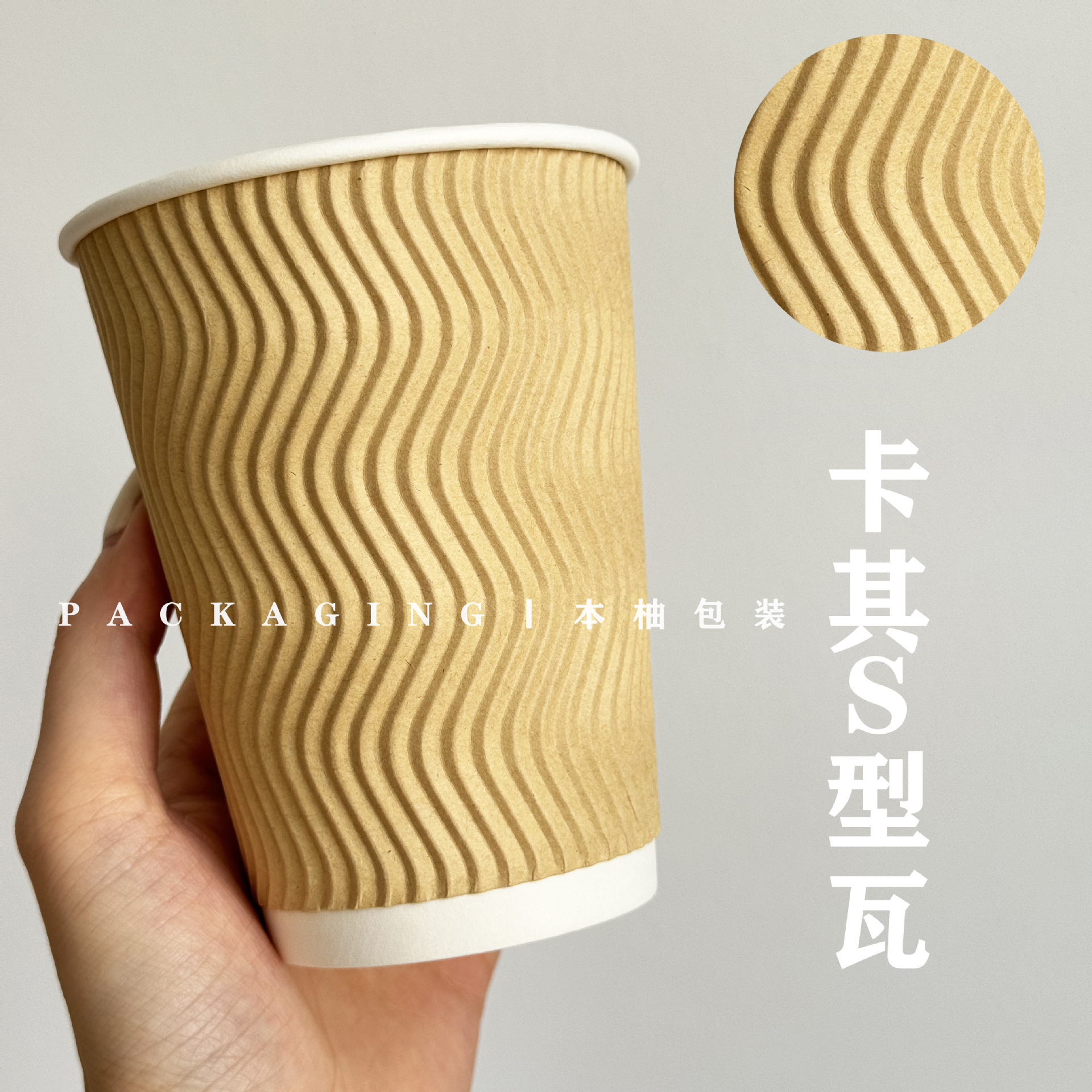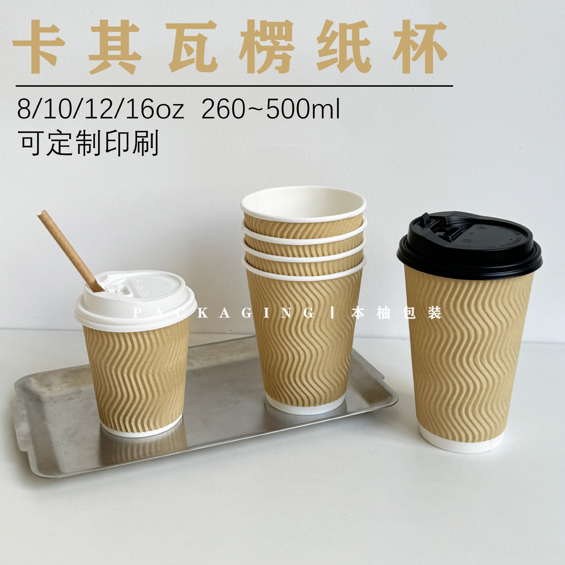 Чашка из гофрированной бумаги цвета хаки одноразовая утолщение, теплоизоляция, экологически чистый кофе, молочный чай на вынос, упакованный печатный LOGO
