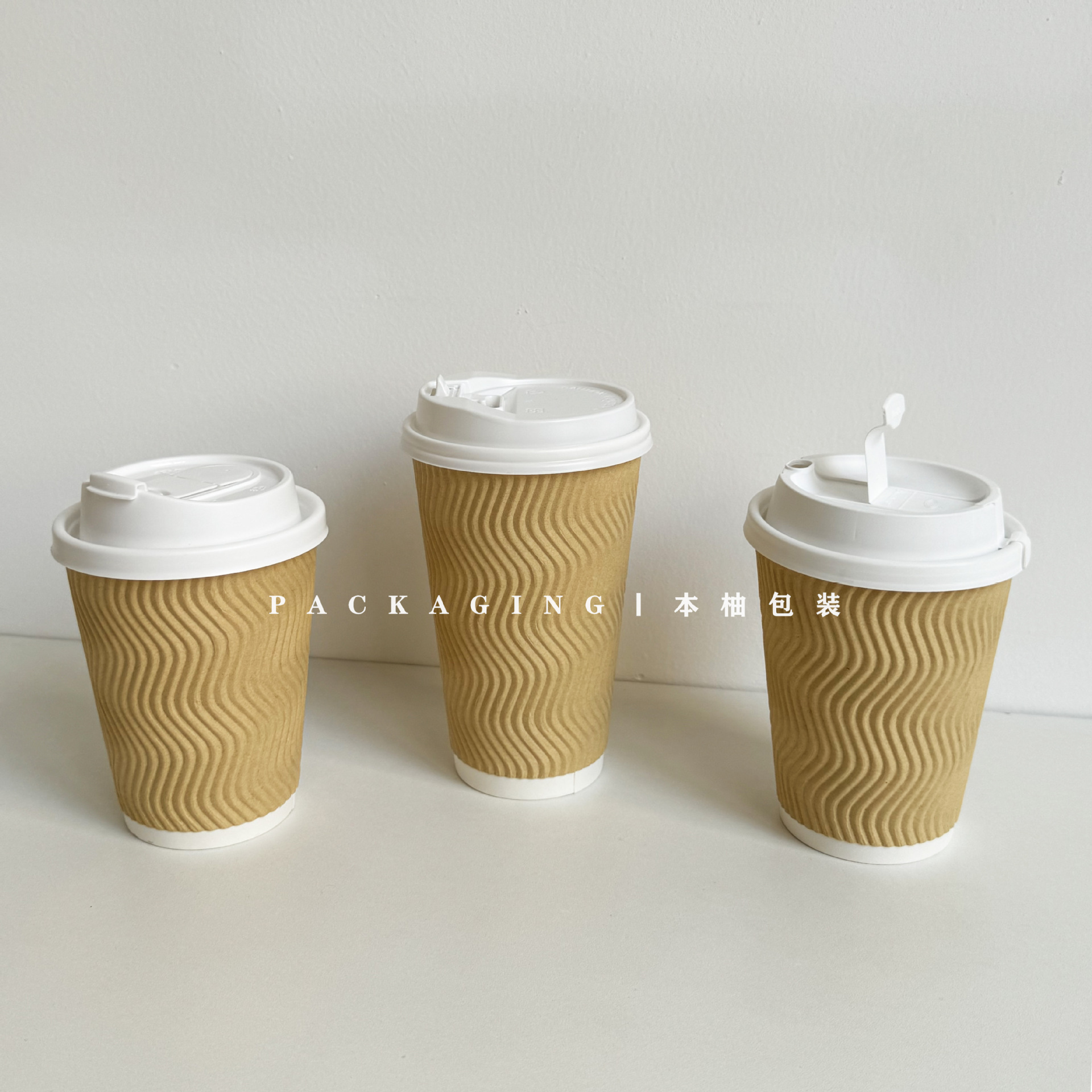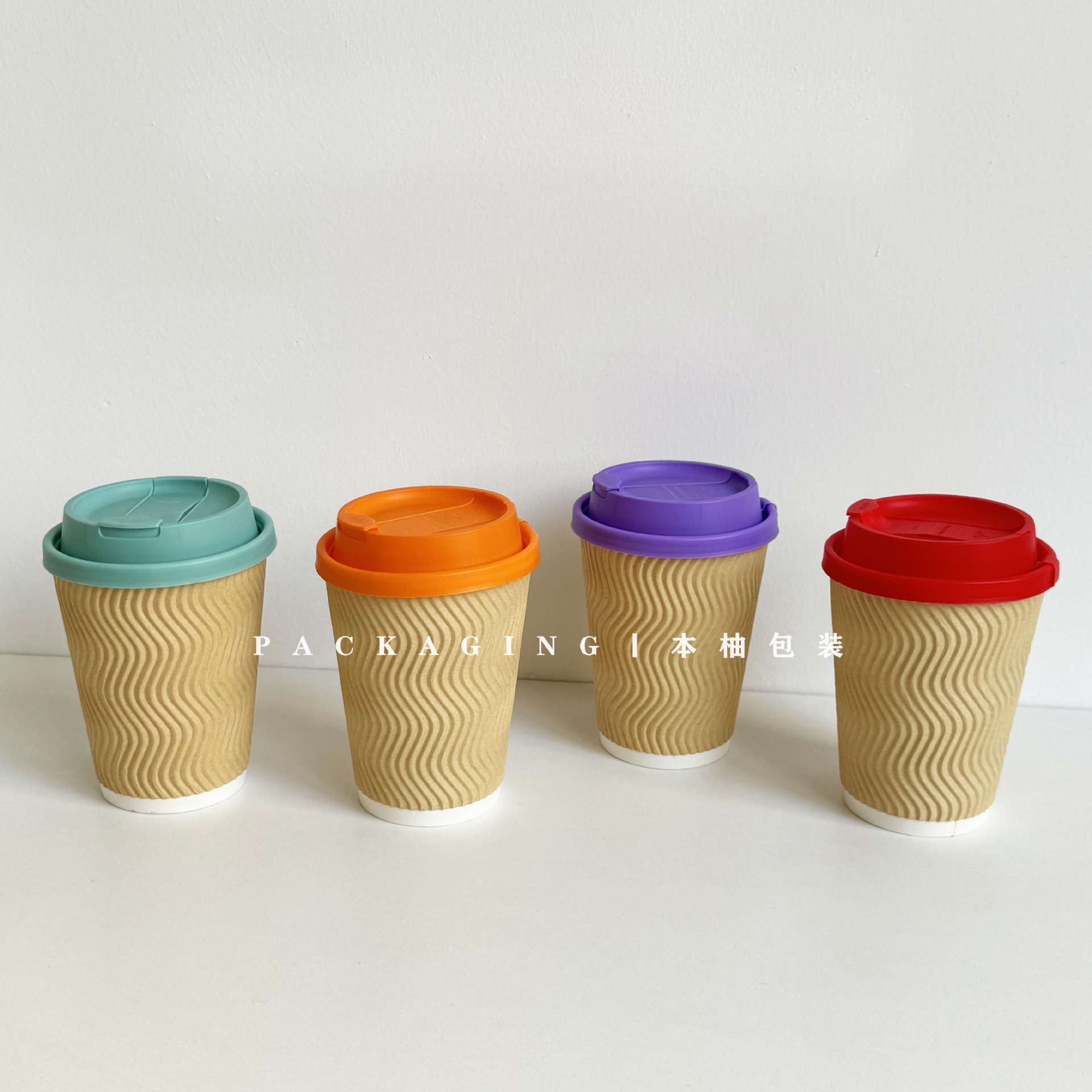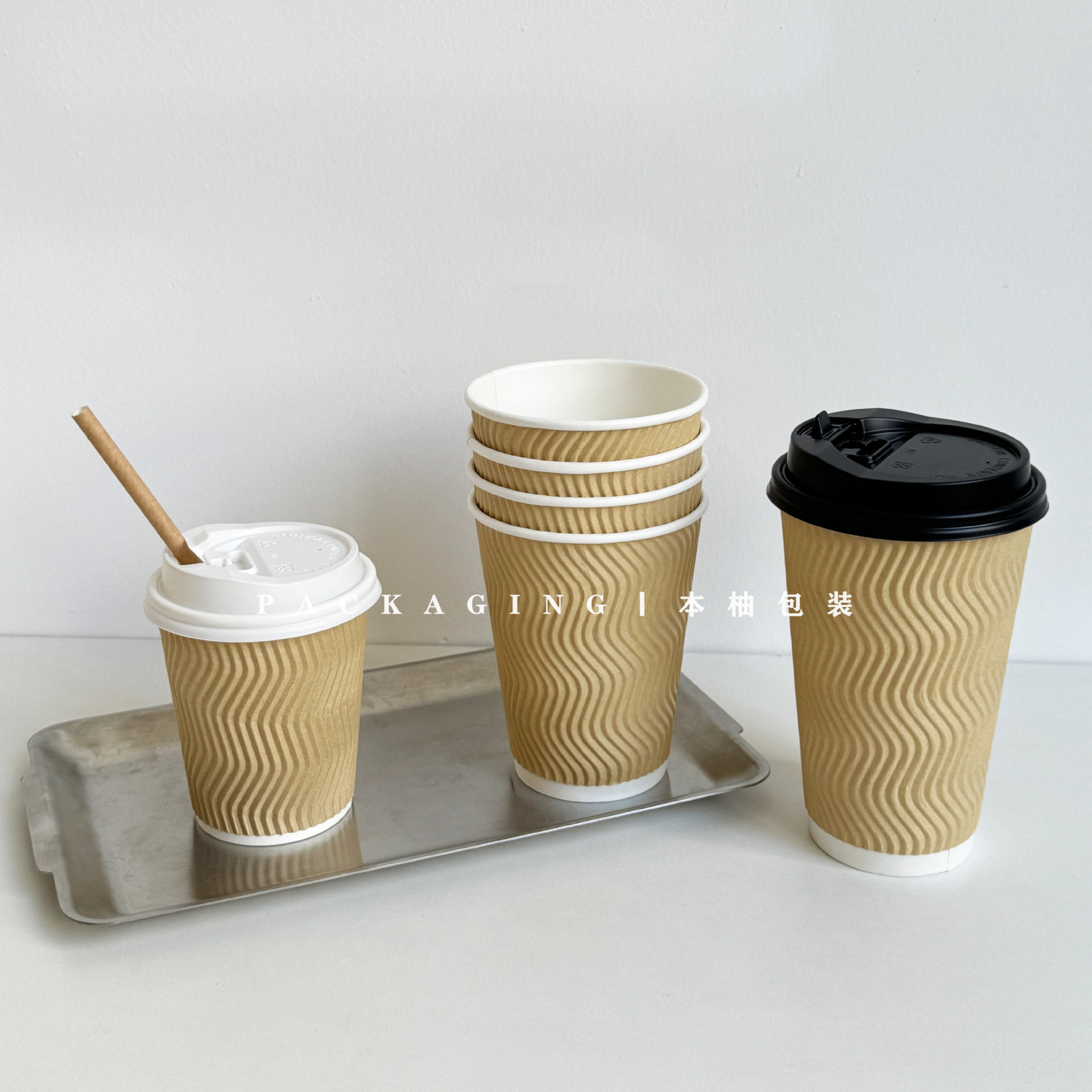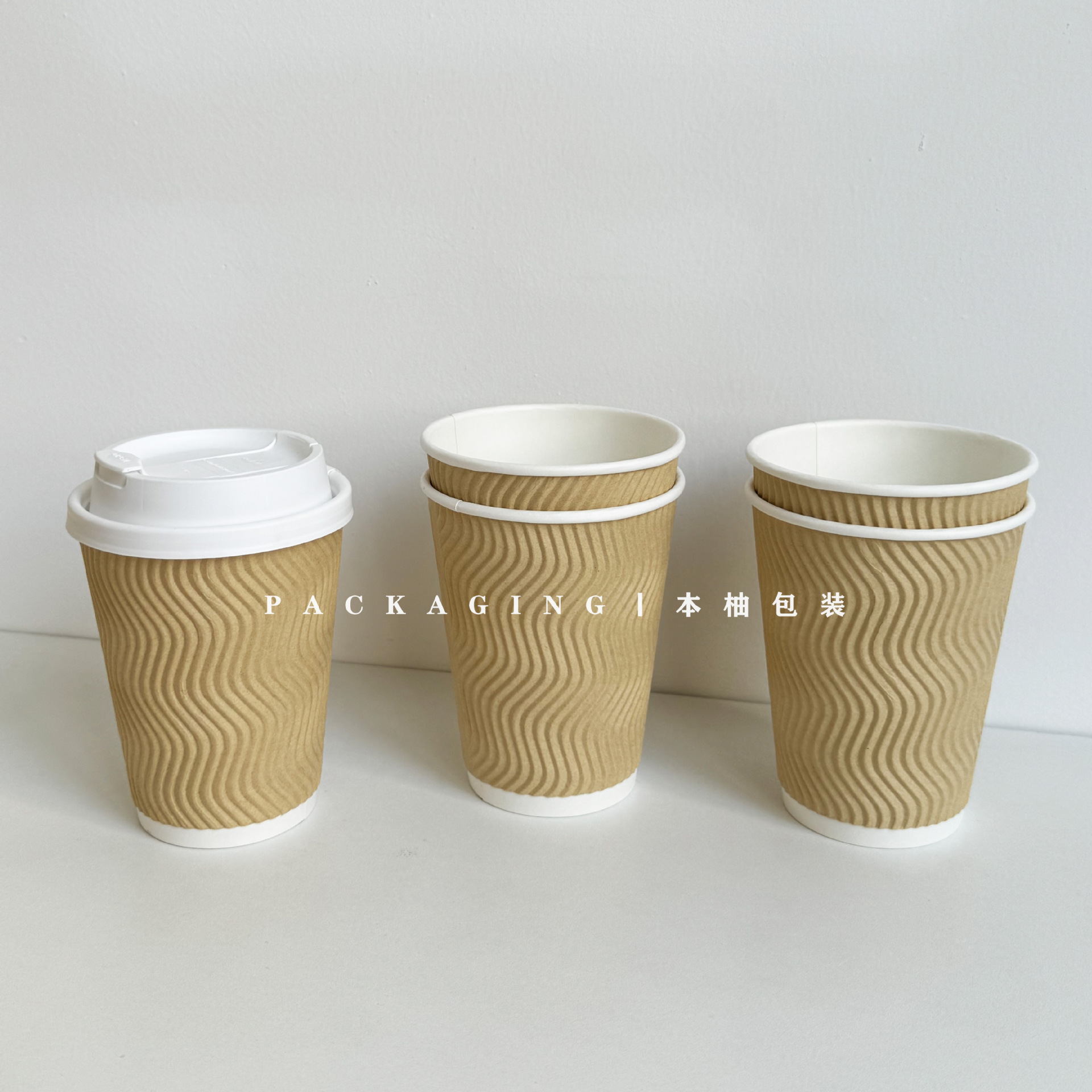 Чашка из гофрированной бумаги цвета хаки одноразовая утолщение, теплоизоляция, экологически чистый кофе, молочный чай на вынос, упакованный печатный LOGO