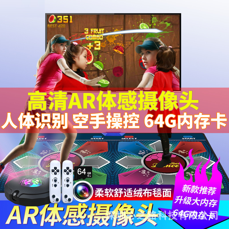 Оптовая камера беспроводное двойное танцевальное одеяло домашний телевизор детский соматосенсорный игровой автомат AR Dancing Machine Run