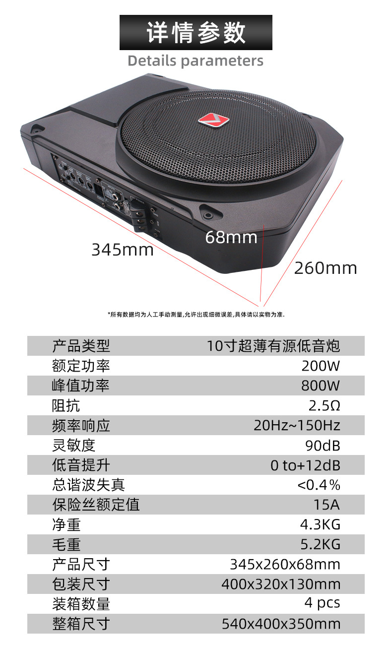Оптовая Продажа с фабрики 10-дюймовая автомобильная аудиосистема Модифицированная Небольшая стальная пушка 12 В активный мощный ультратонкий автомобильный сабвуфер