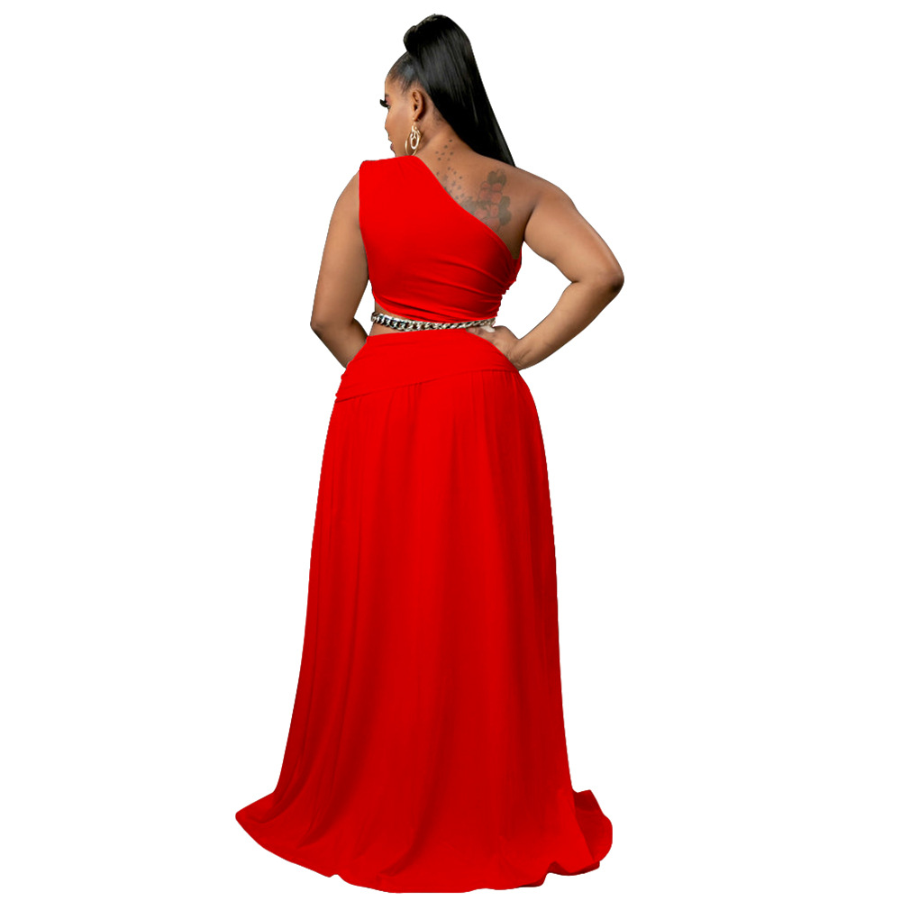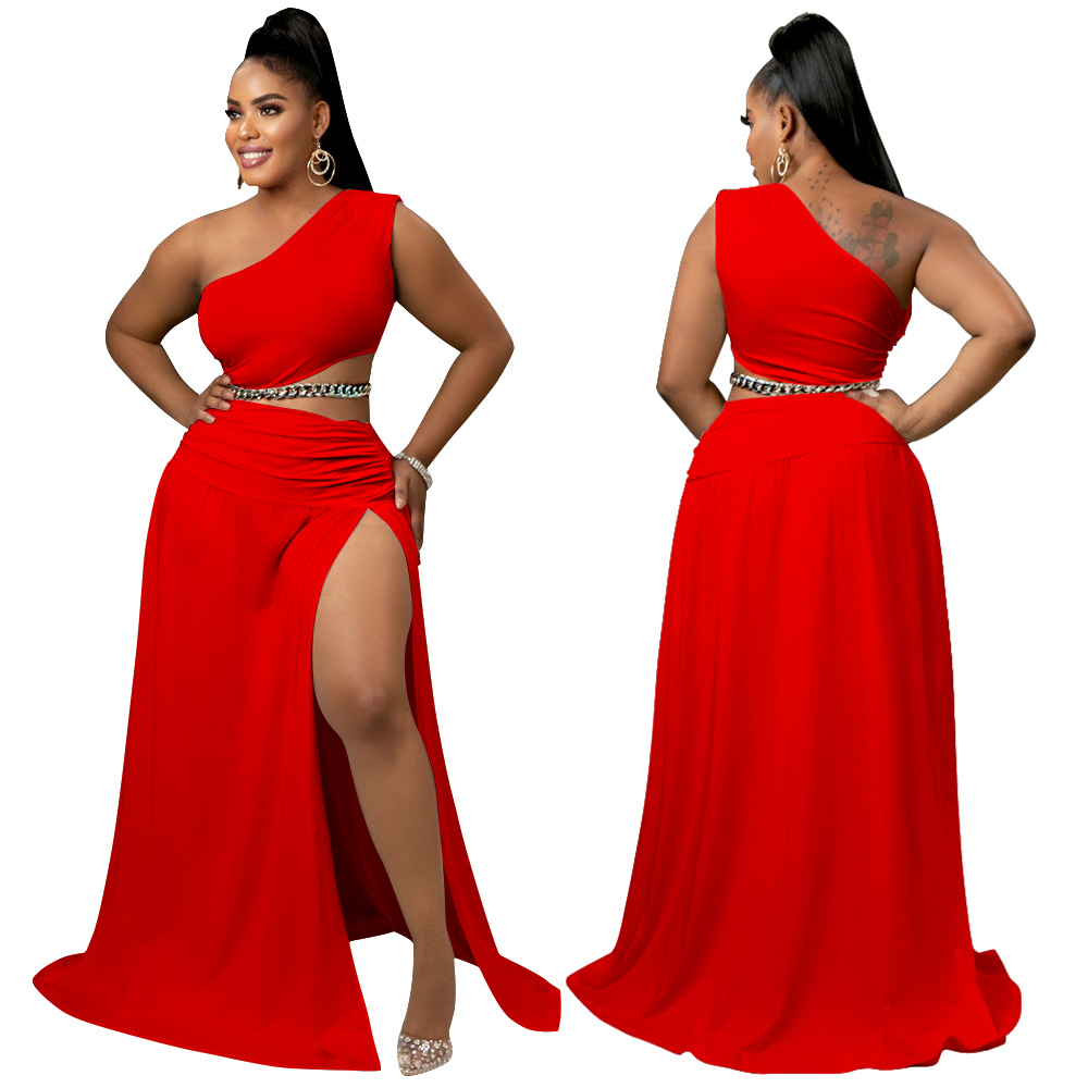 2022 европейская и американская женская амазонка большой размер костюм сплошной цвет косой плечи с открытыми плечами