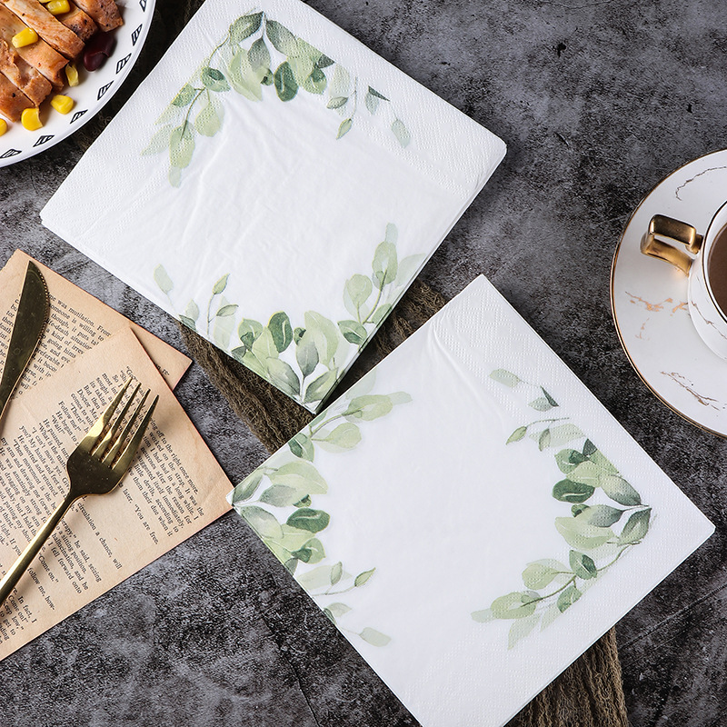 Прямые поставки с фабрики в наличии новые листья цветные печатные салфетки бумажное полотенце западный ресторан пекарня для салфеток для лица