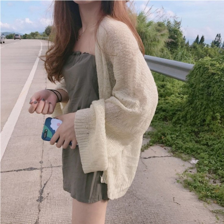 Вязаный свитер 2024 Весна-Лето Тонкая куртка Женская свободная ретро пляжная шаль Рубашка с эффектом кондиционирования