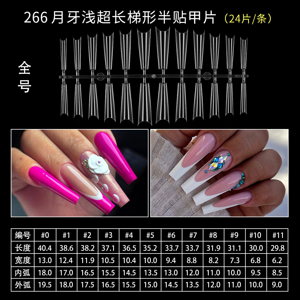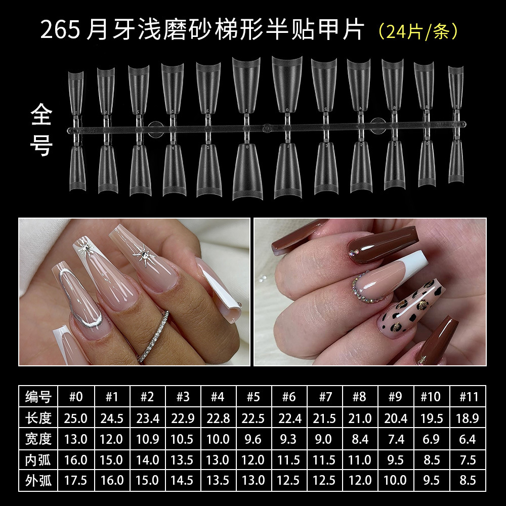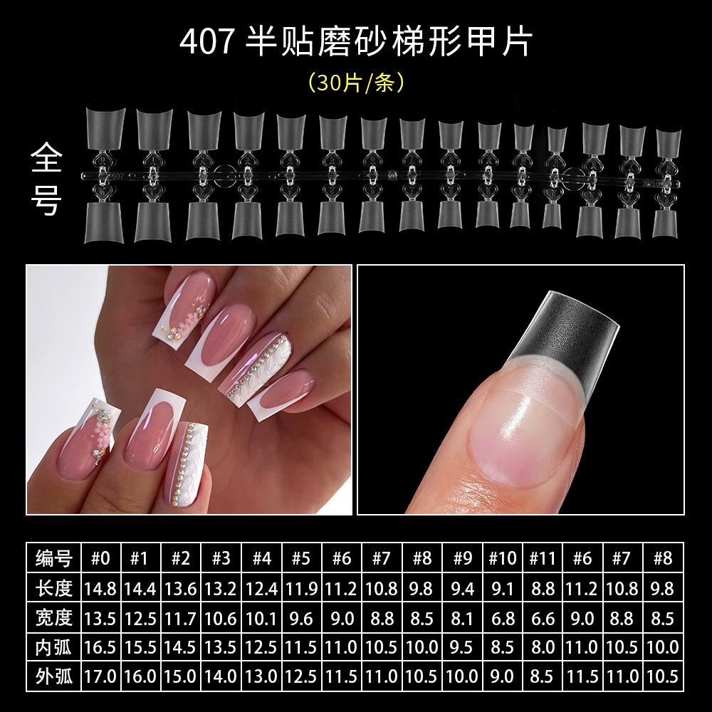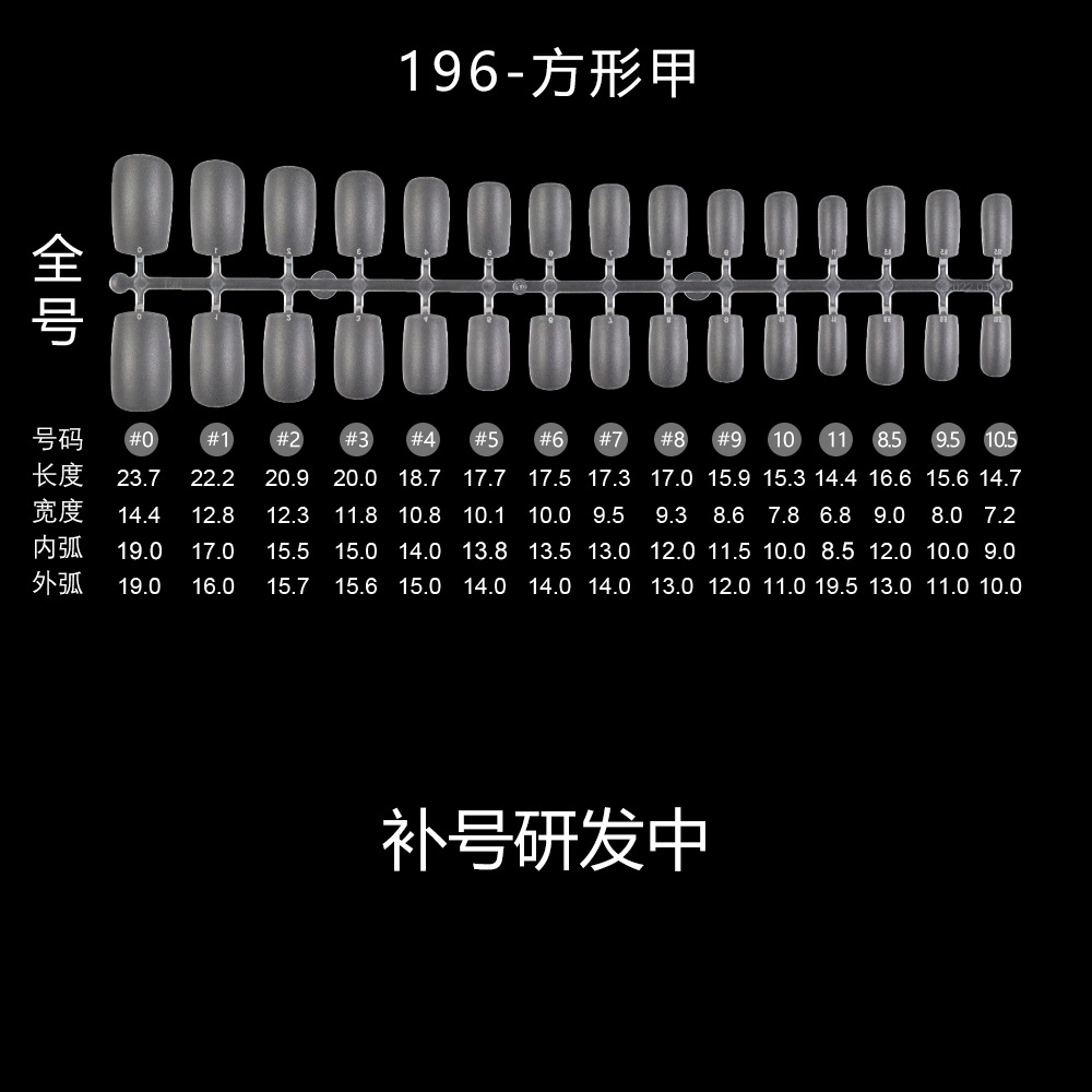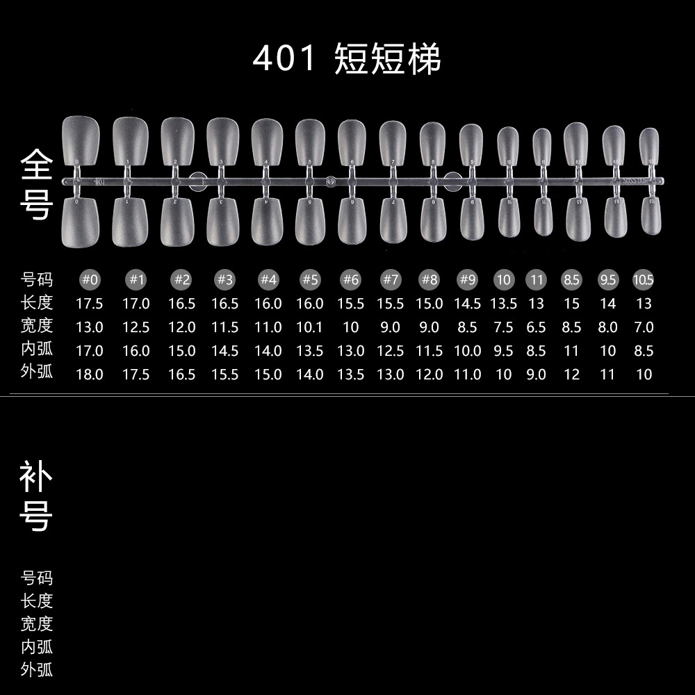 401-короткая лестница; 193 короткая трапеция; 409-длинный овал; 403 Новый короткий квадратный круг; 404 короткий балет; Половина наклейки в форме полумесяца 265; Половина наклейки в форме полумесяца 266XL; 195 короткий круг; 402 новая короткая лестница (полуматовая); 405 короткий миндаль; 406 матовых ногтей; Неглубокая короткая лестница 407.; 408 неглубокая наклейка короткий круг; 191 короткий овальный; Трапеция 192; 194 миндалевидные ногти; 196 квадратных гвоздей; 197 короткий квадратный круг; Миндаль длиной 198; 199 Японский жир овал; 199-2 японский короткий толстый овал; 1 палочка = 30 штук, 50 штук в пакете, 2400 штук в коробке.