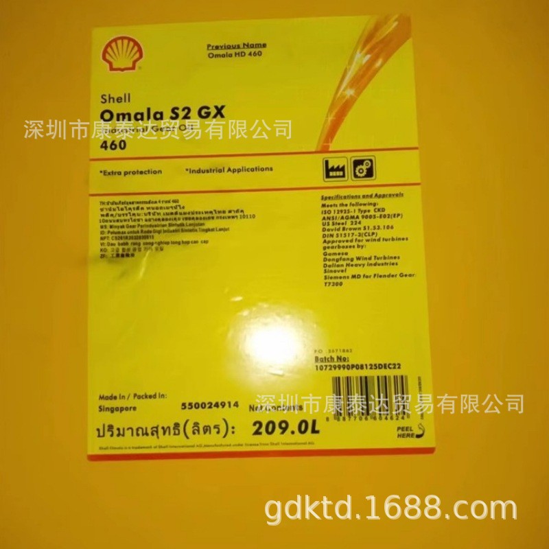 现名:壳牌可耐压S2 GX 68、100、150、220、320、460、680齿轮油Shell Omala S2 GX Oil