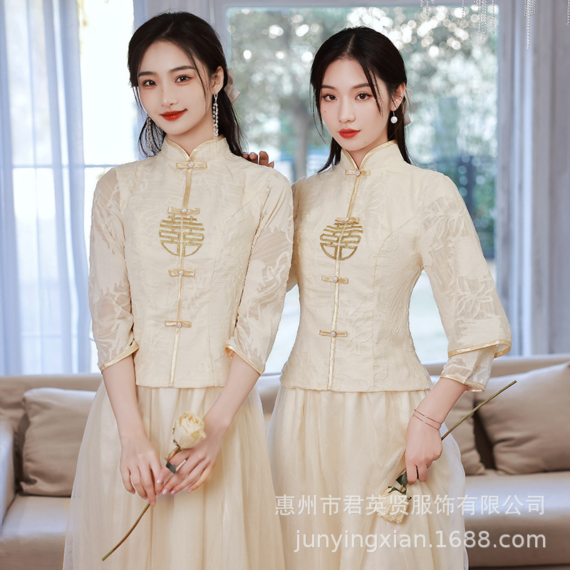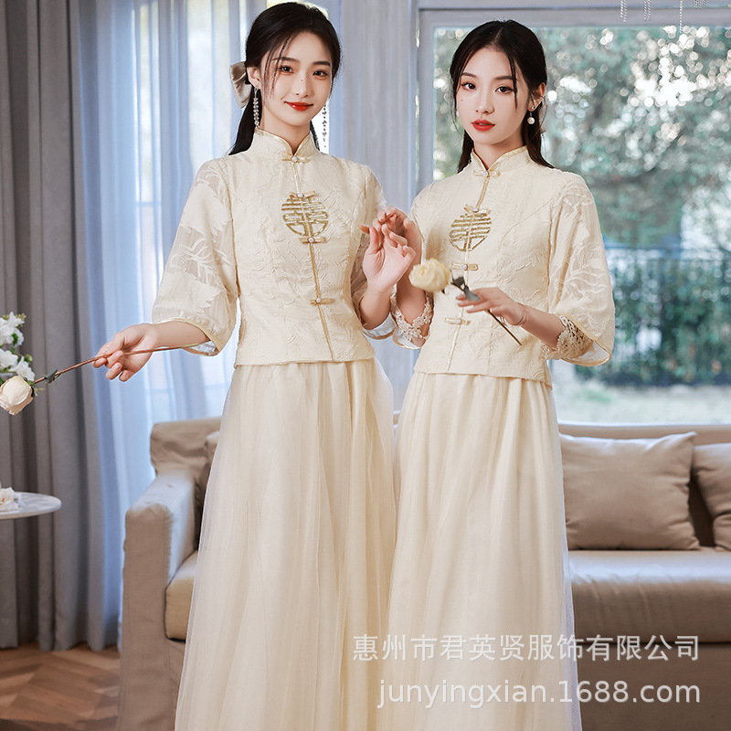 Китайский невесты платье Лето новый стиль платье шампанское сестры платье китайский стиль небольшой свадебный Cheongsam платье невесты