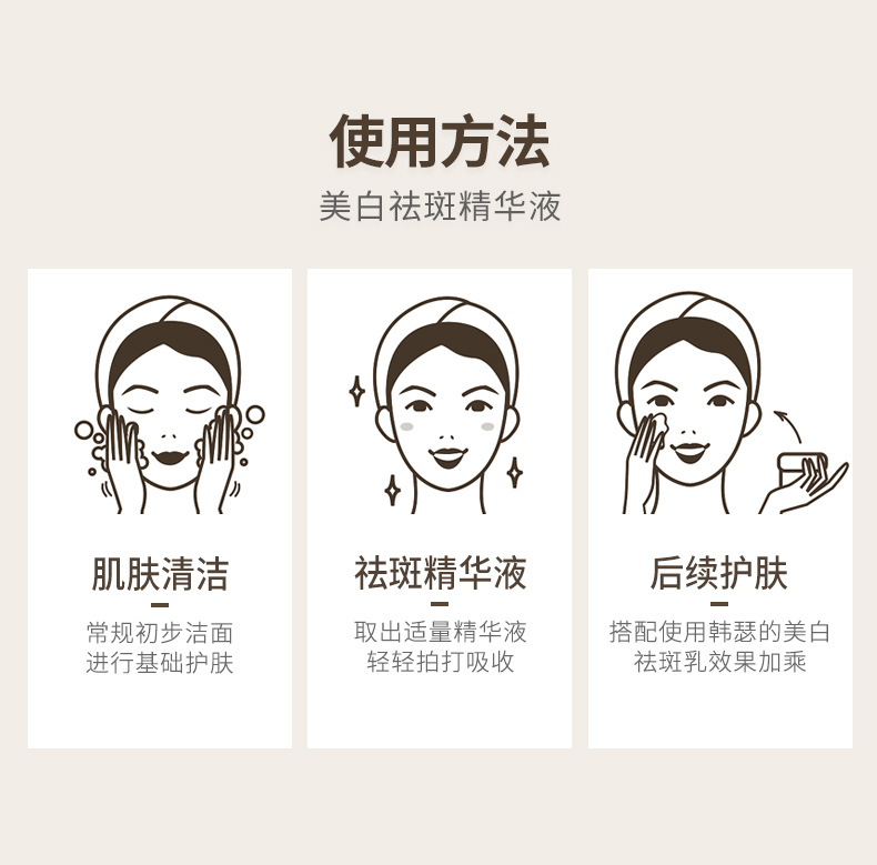 Отбеливающая кожа и эссенция против веснушек 30мл; Отбеливающая и противовеснушковая эссенция 15мл; Zhiduo Отбеливающая и противовеснушковая эссенция 15мл; Han Se Fukyan Отбеливающая и противовеснушечная эссенция 30 мл; Противоэкламптическая эссенция Zhiduo bifid yeast 30мл; Hansel Gold Эссенция с ниацинамидом 30мл