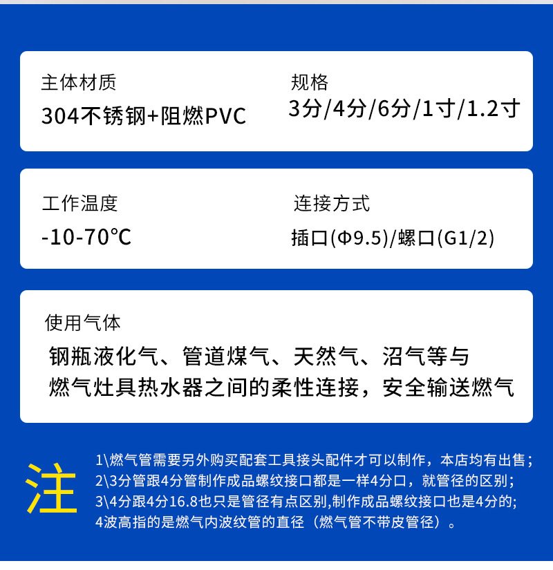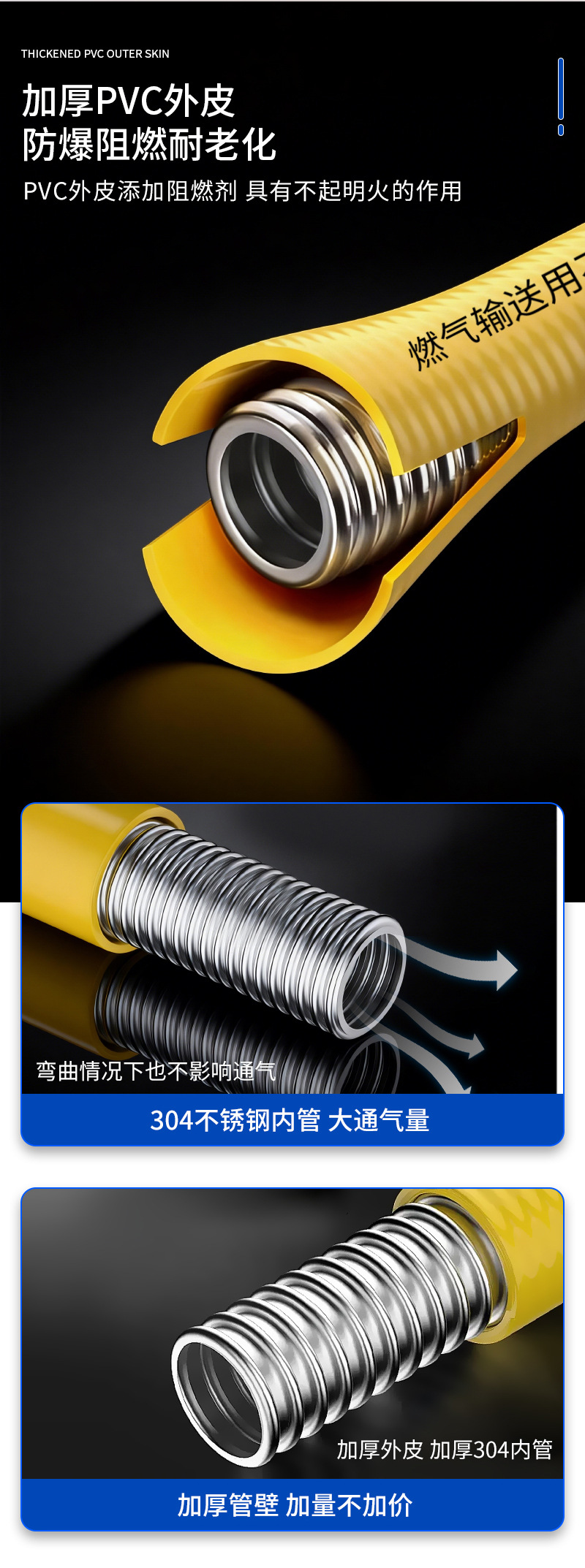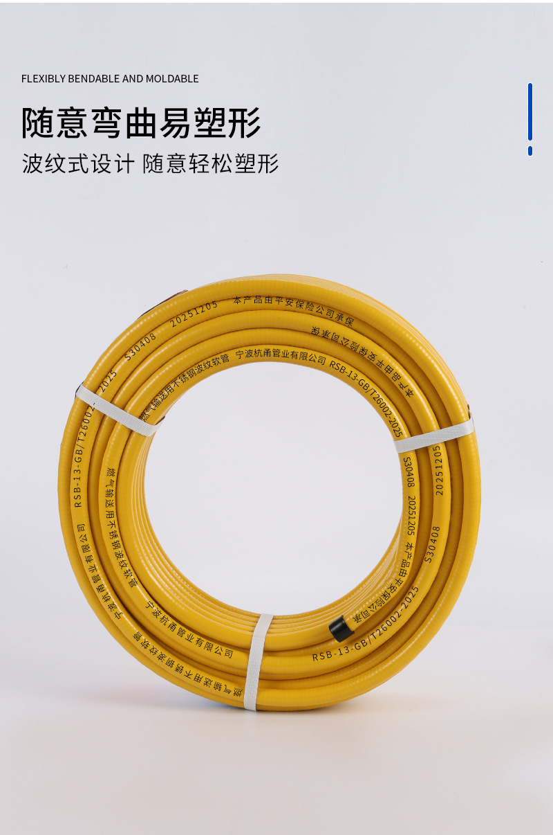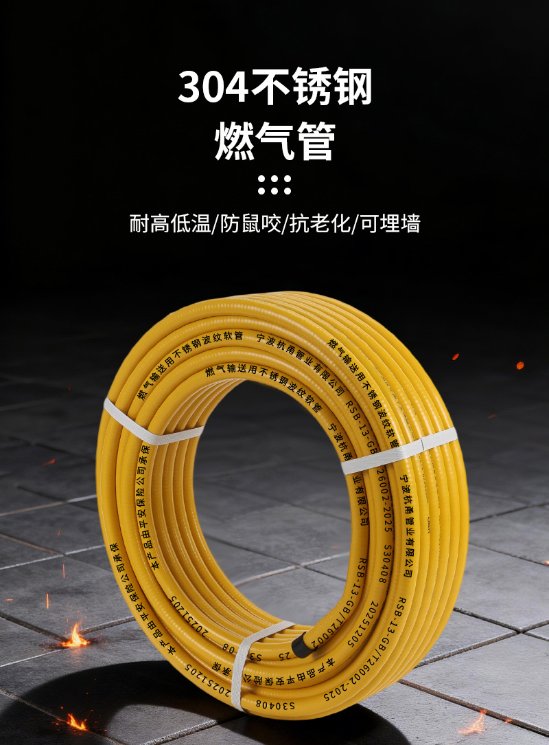 Газопровод из нержавеющей стали 304 для природного газа, сжиженного газа, гофрированный, 3/4 дюйма, бытовой металлический взрывозащищенный гибкий шланг