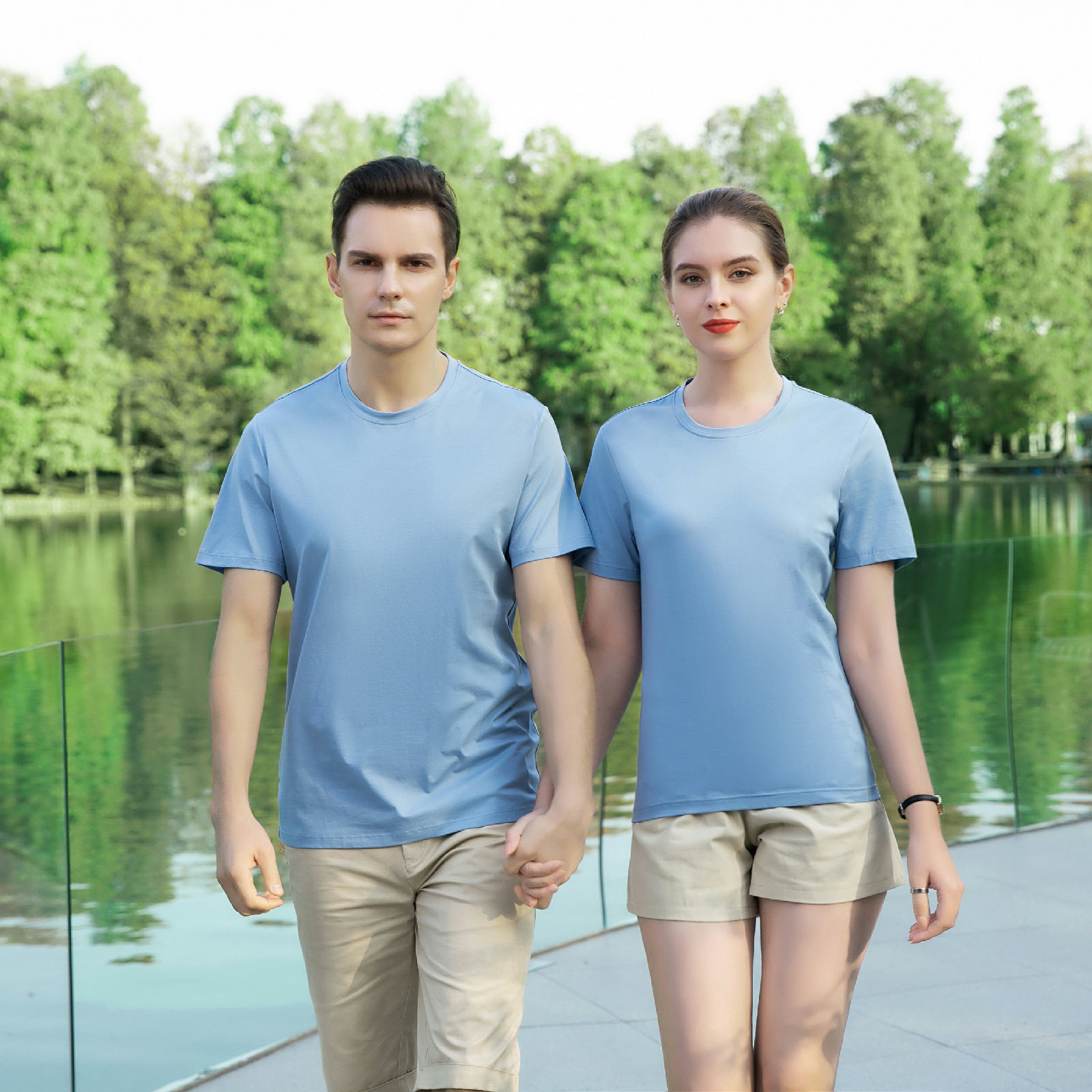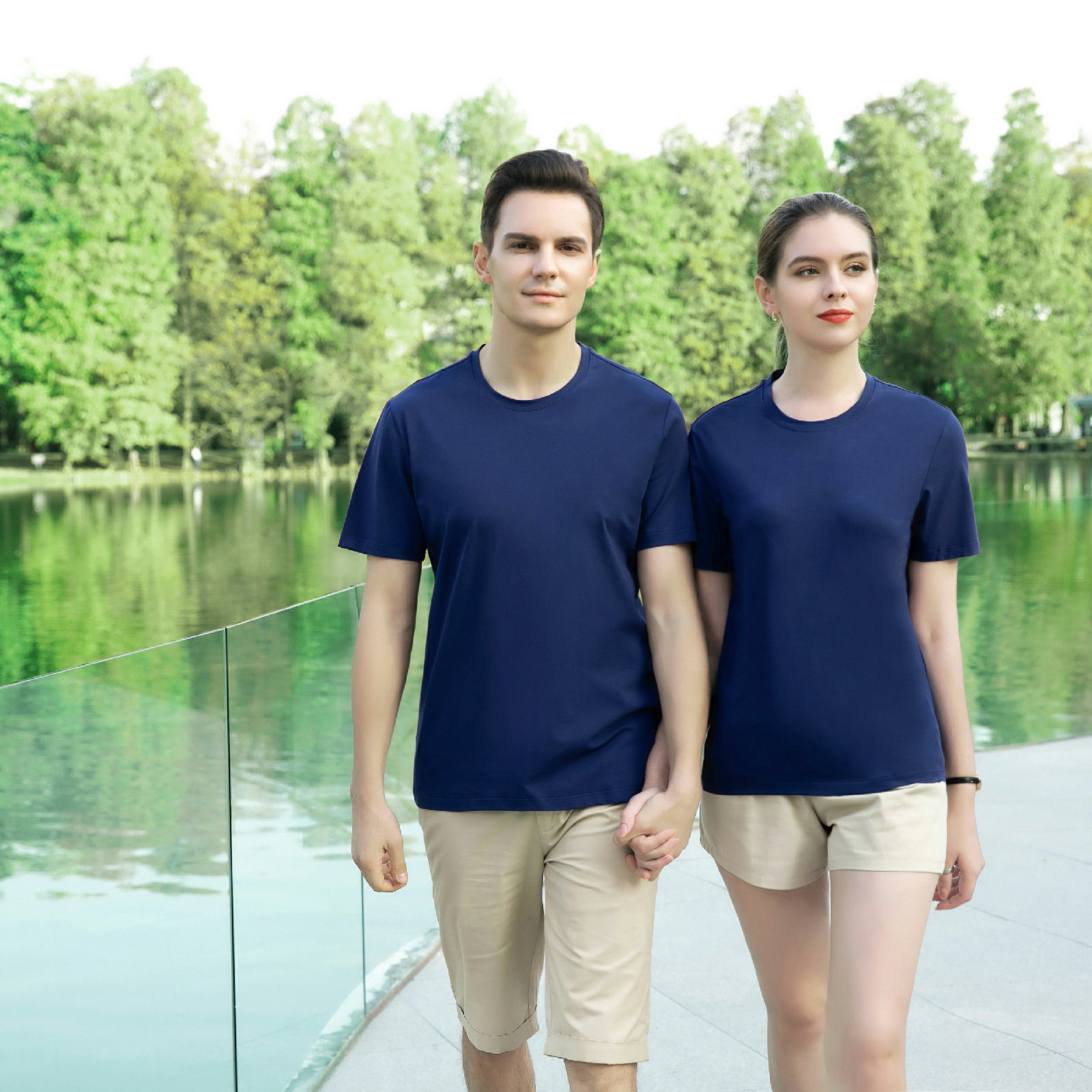 Летняя Новая повседневная Однотонная футболка с круглым вырезом из мерсеризованного хлопка с короткими рукавами и жидким аммиаком, универсальная приталенная культурная рубашка с логотипом на заказ