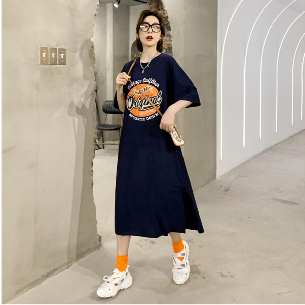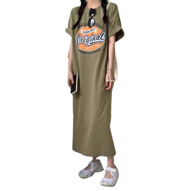 Платье-футболка с короткими рукавами для полных девочек, женское летнее длинное ленивое платье выше колена больших размеров на 2023 год, повседневное длинное платье