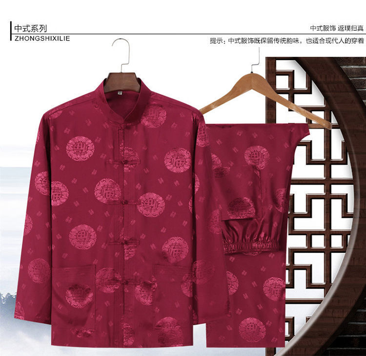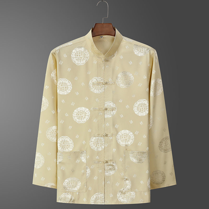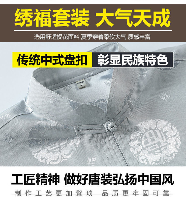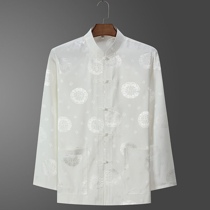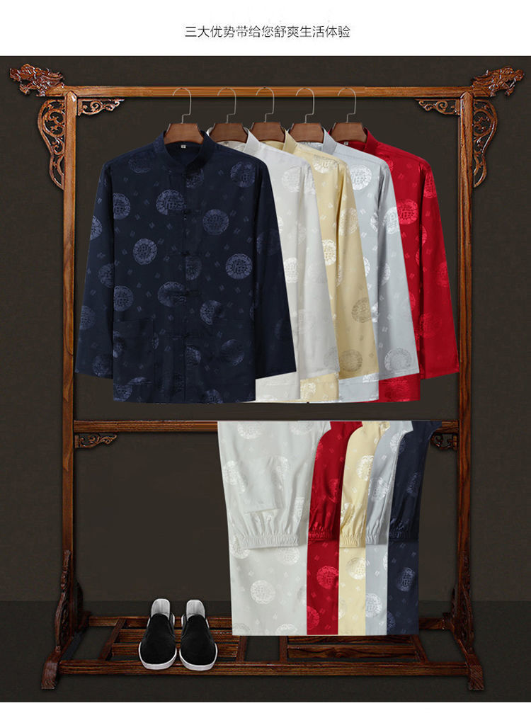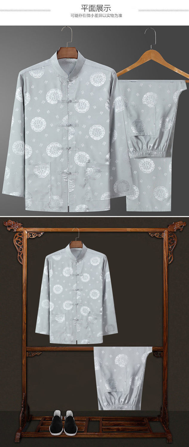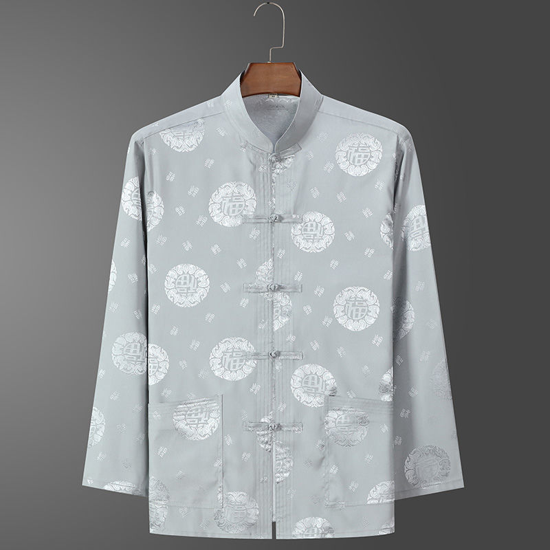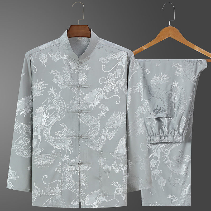 Костюм старика Тан, мужской ледяной Шелковый костюм с длинным рукавом, летний костюм дедушки на день рождения для людей среднего и пожилого возраста, костюм для папы в китайском стиле, весенне-осенний костюм