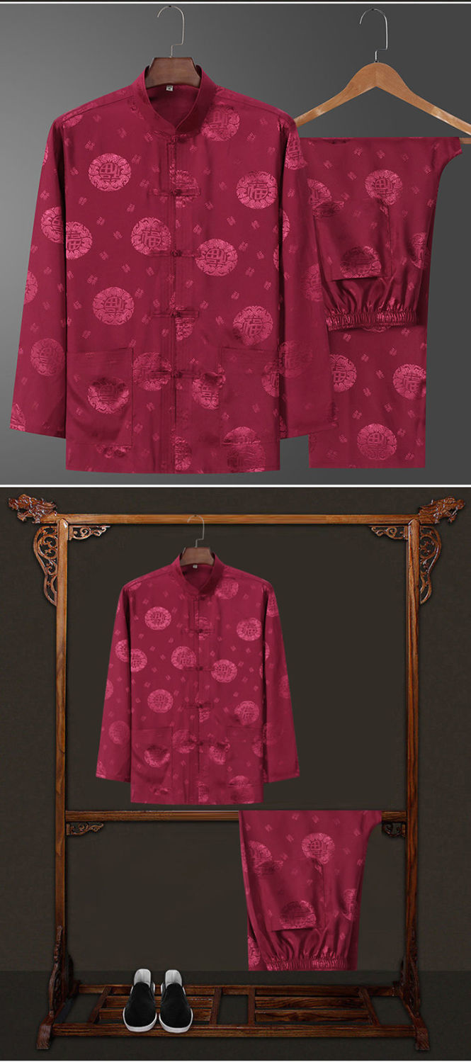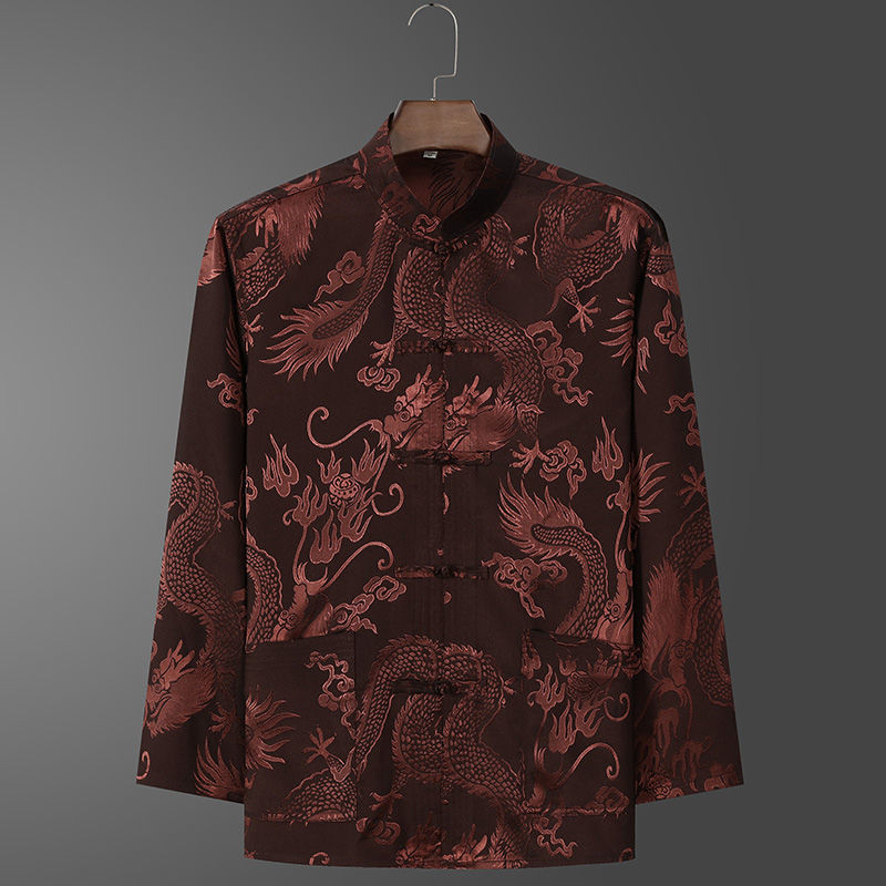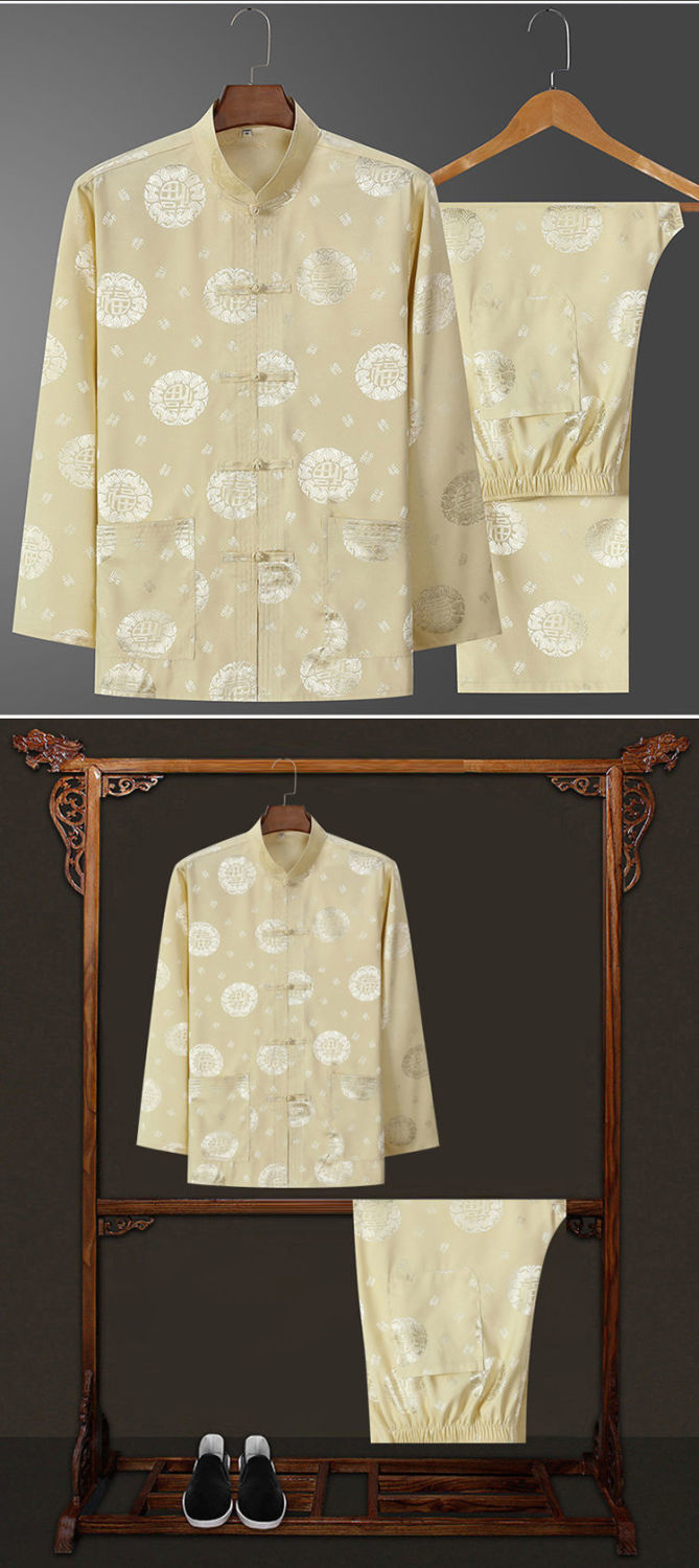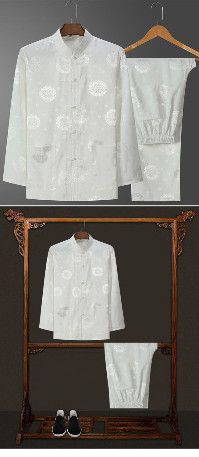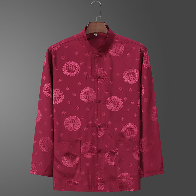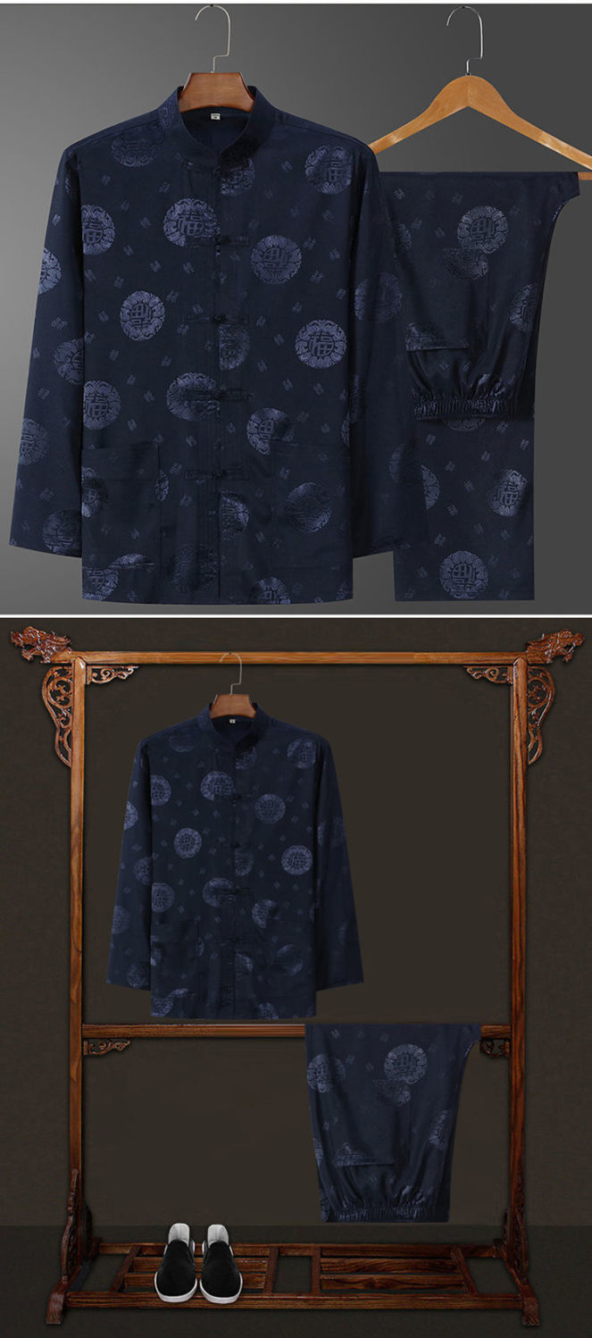 Костюм старика Тан, мужской ледяной Шелковый костюм с длинным рукавом, летний костюм дедушки на день рождения для людей среднего и пожилого возраста, костюм для папы в китайском стиле, весенне-осенний костюм