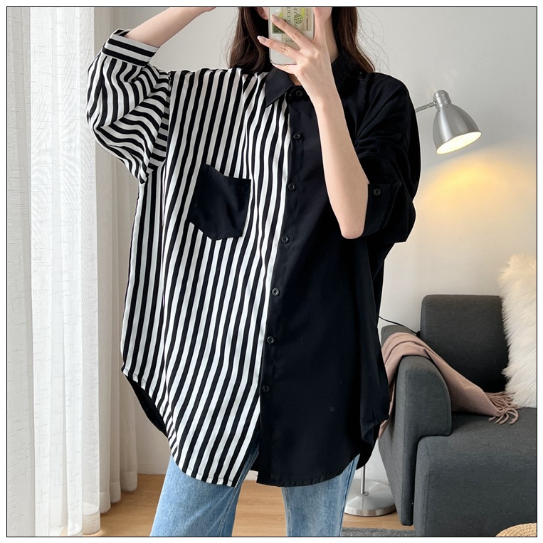 8315 Свободная Женская одежда больших размеров, пухлая рубашка для девочек, кг, пригодная для носки в Корейском стиле, индивидуальный подбор цветов для похудения