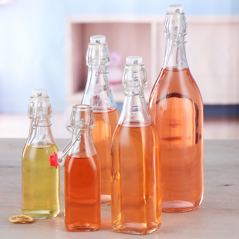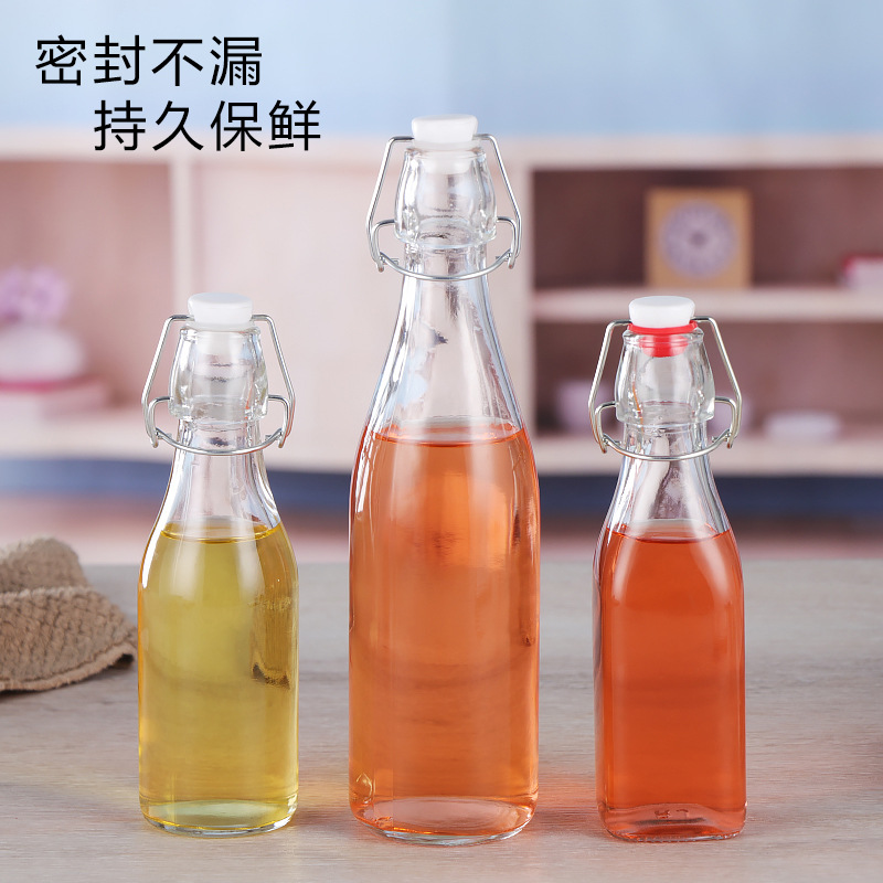 Прозрачная стеклянная ферментная бутылка с круглой пряжкой, бутылка для соевого соуса, уксуса, бутылка для вина, герметичная бутылка, бутылка для пива, бутылка для напитков