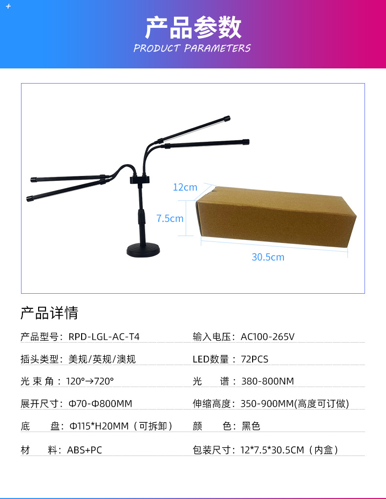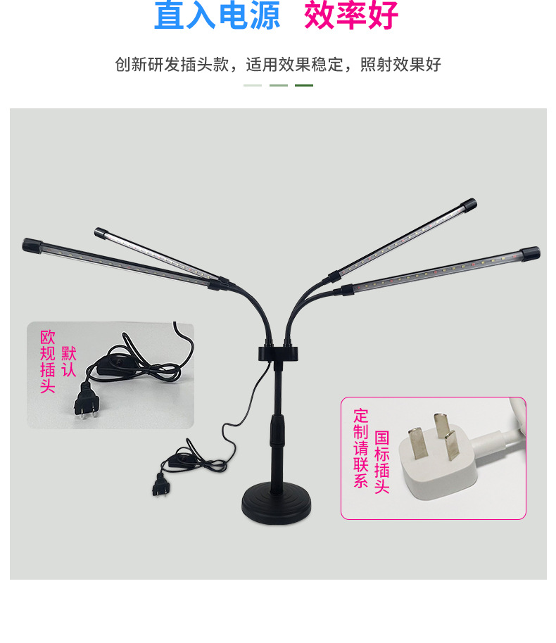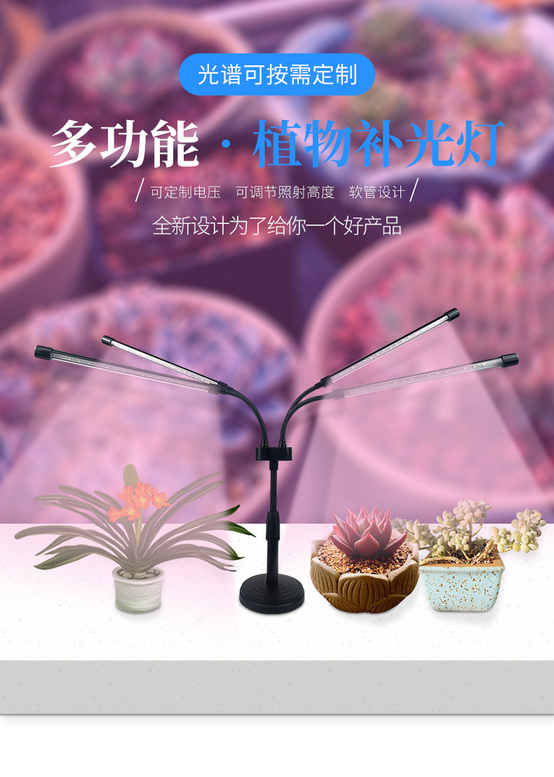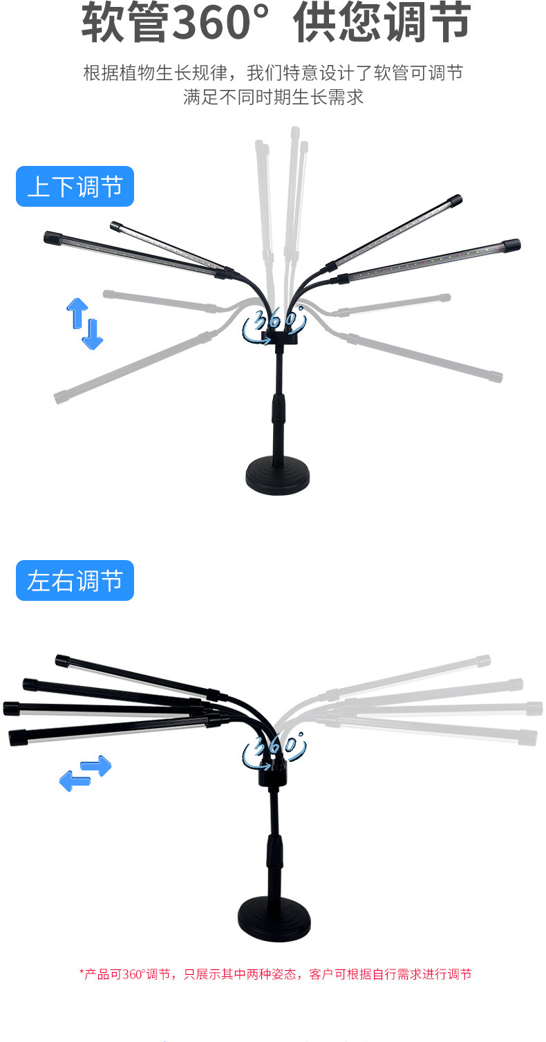 Трансграничный эксклюзивный светодиодный полный спектр высокого давления комнатных настольных цветов съемный 4 трубки роста растений зажим лампы