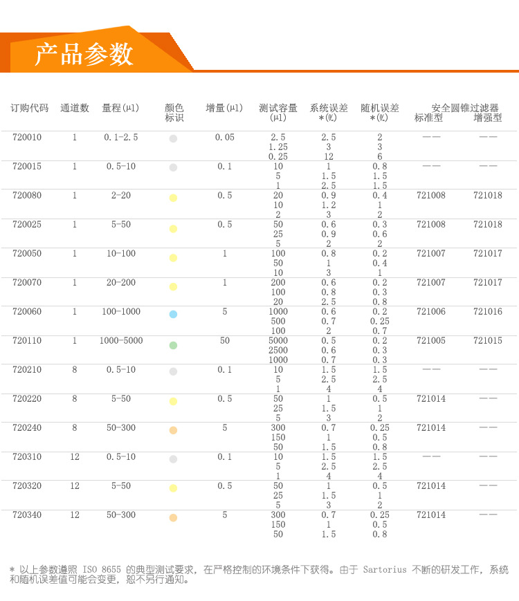 Одиночный канал 0,1-2,5 ~ Л; Одиночный канал 0,5-10 ~ Л; Одиночный канал 2-20 ~ Л; Одиночный канал 5-50μл; Одиночный канал 10-100% л; Один канал 20-200 мкл; Одиночный канал 100-1000 мкл; Один канал 1000-5000 мкл; 8 каналов 0,5-10 мкл; 8 каналов 5-50 мкл; 8 каналов 50-300 мкл; 12 каналов 0,5-10 мкл; 12 каналов 5-50 мкл; 12 каналов 50-300 мкл
