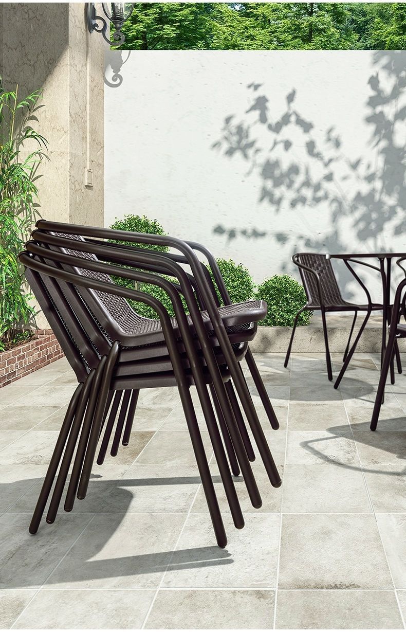 Напольный Стол Ротанга и стул Имитация стула ротанга Двор Утюг Кофе Молочный чайный магазин Стол и стул Группа зонтов Пакет из пяти частей Отдых на открытом воздухе