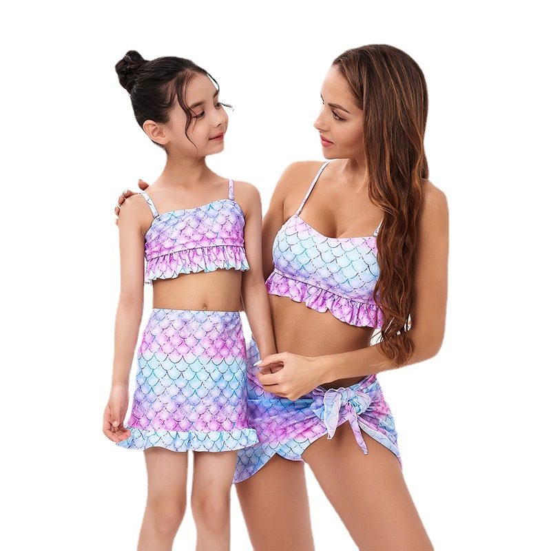 Трансграничный европейский и американский купальник родитель-ребенок русалка чешуйчатый принт