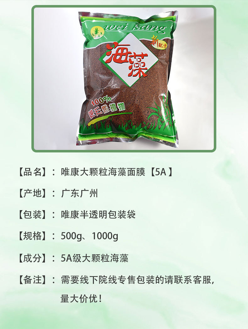 Маска для лица Weikang с крупными частицами морских водорослей, 1000 г, в пакете, увлажняющая и питательная, с семенами тайских морских водорослей, оптом от производителя, для упругости кожи