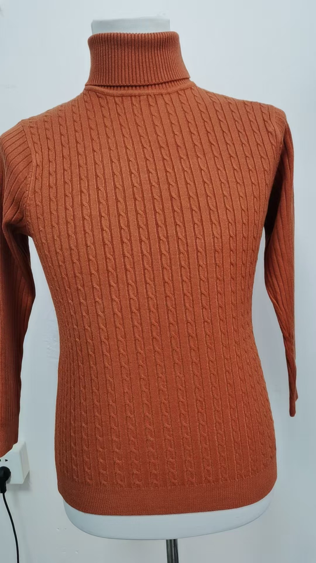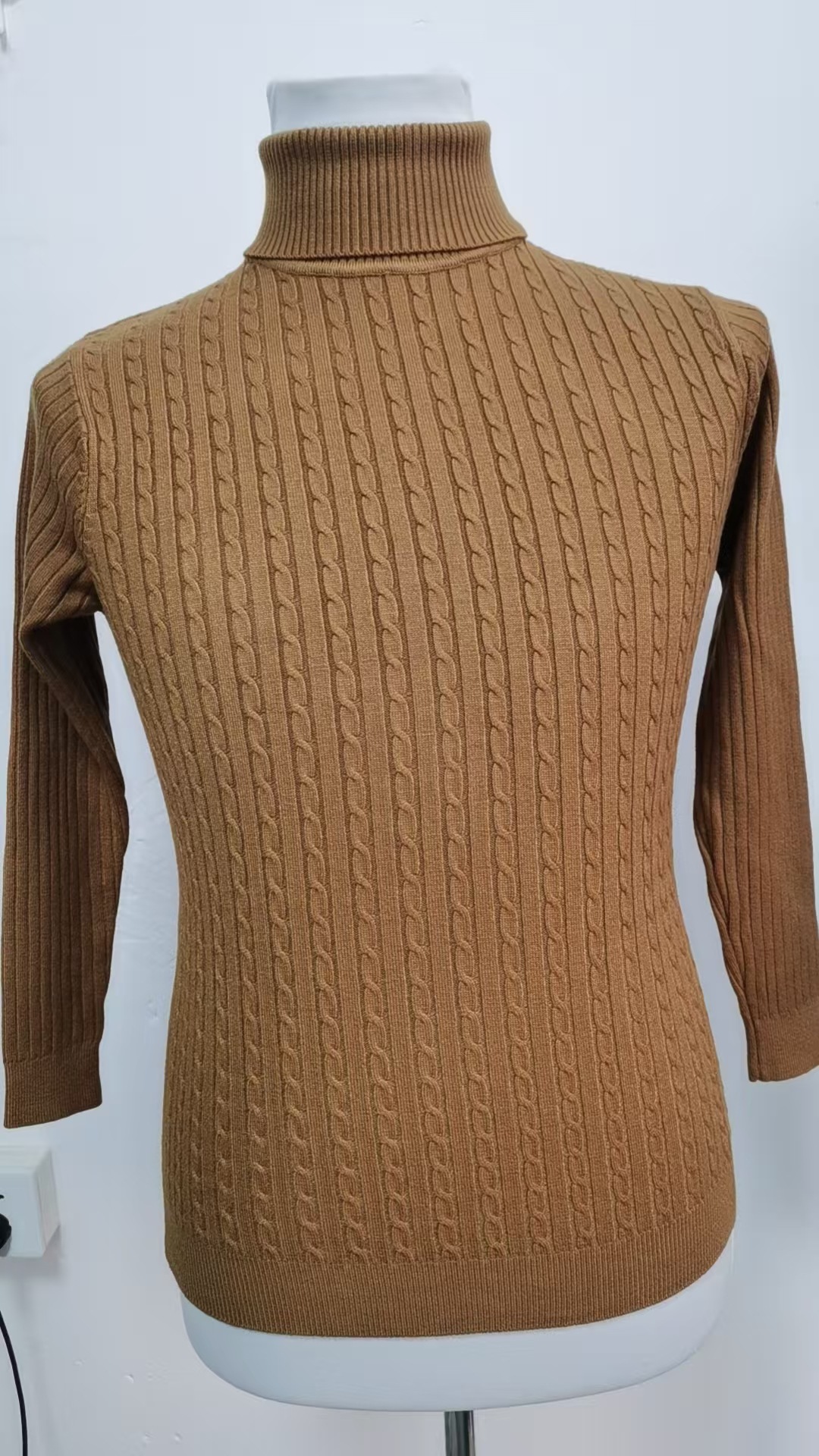 Высокий воротник, трансграничный осенне-зимний трикотаж, мужской экспорт, модный витой тонкий мужской трикотаж с длинными рукавами, пуловер, нижняя рубашка