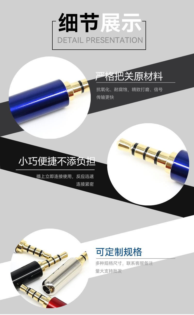 Высококачественный аудиоразъем 3,5 мм, большой четырехъядерный позолоченный микрофонный адаптер для микрофона