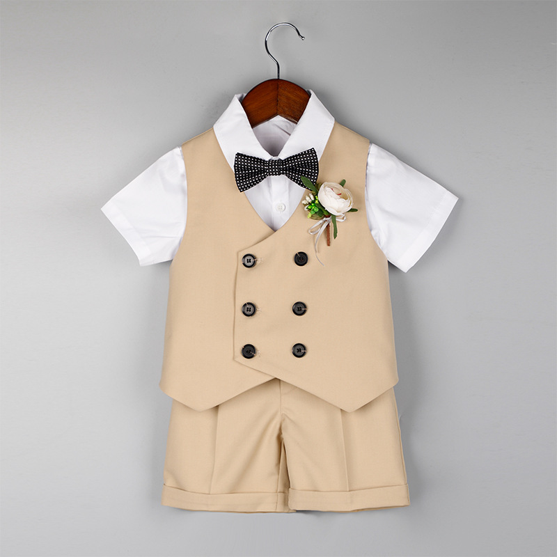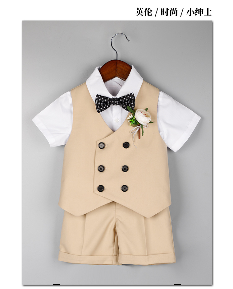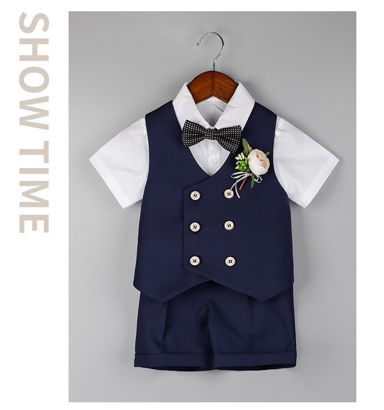 Детский костюм, новый весенне-летний жилет с короткими рукавами, платье в цветочек для мальчика, детское банкетное платье на день рождения ребенка маленького и среднего размера