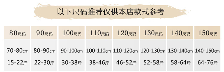 80 см: рекомендуемый вес 7.5-10kg; 90 см: рекомендуемый вес 10-13kg; 100 см: рекомендуемый вес 13-15kg; 110 см: рекомендуемый вес 15-18.5kg; 120 см: рекомендуемый вес 18.5-21.5kg; 130 см: рекомендуемый вес 21.5-25kg; 140 см: рекомендуемый вес 25-29kg; 150 см: рекомендуемый вес 29-33.5kg; 160 см: рекомендуемый вес 33.5-39kg; 170 см: рекомендуемый вес 39-44kg