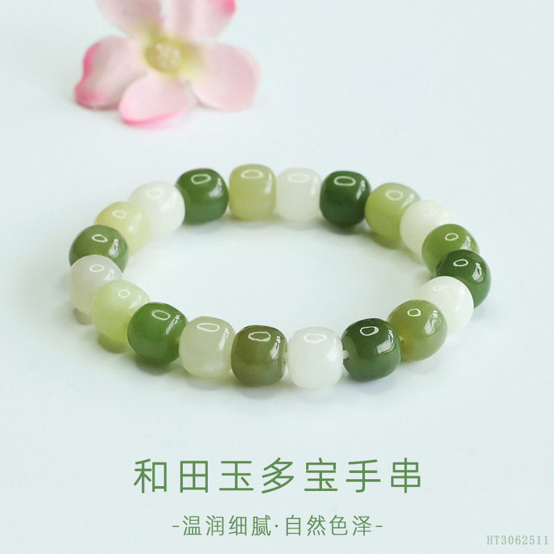 Браслет из бусин из нефрита Хэтиан в старинном стиле с несколькими драгоценными камнями (HT3062511)
