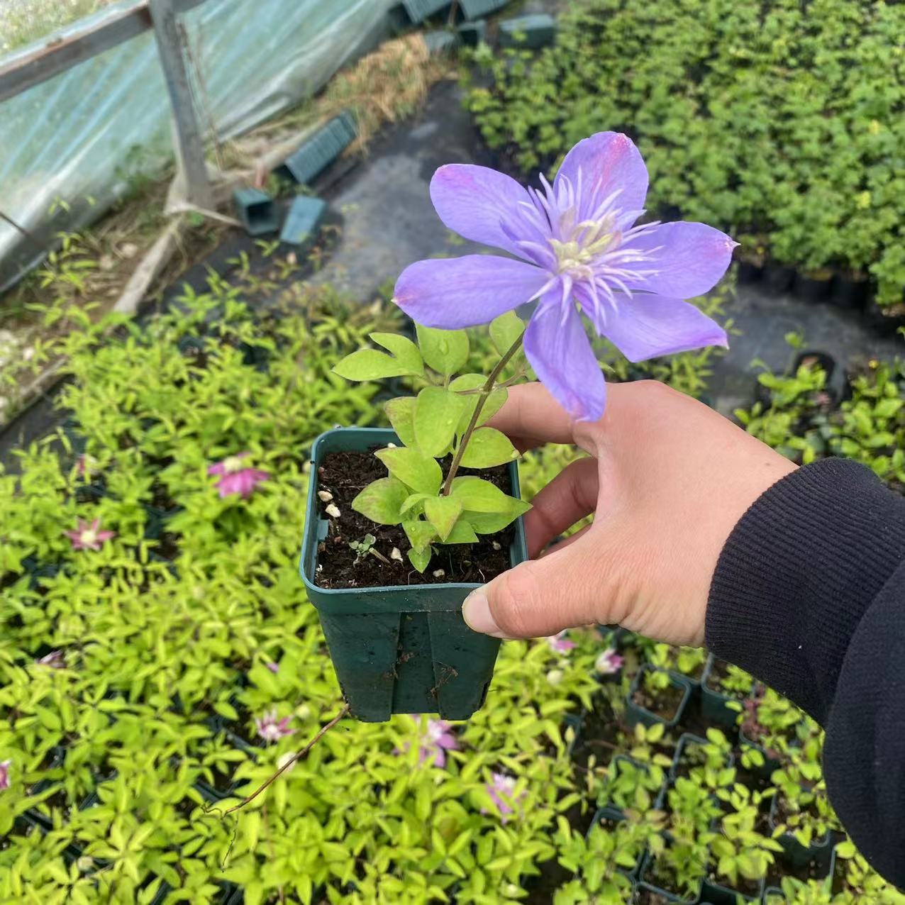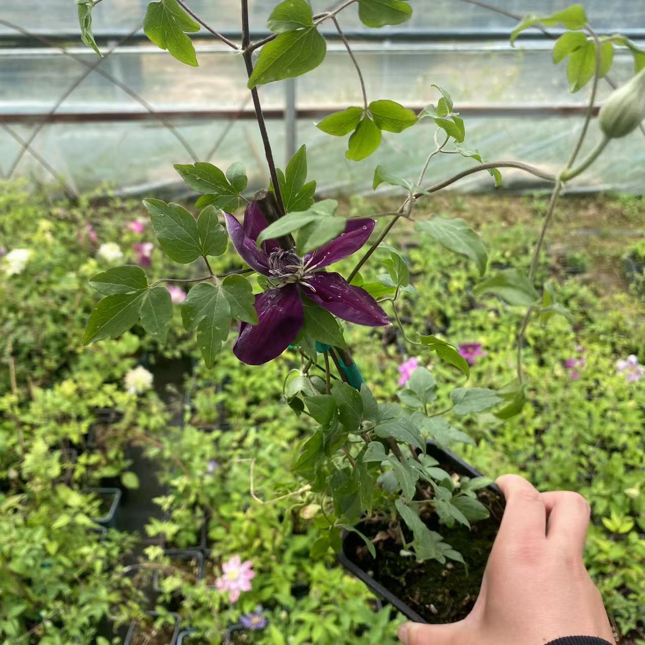 Квадратное кашпо P9 для клематиса «Джозефин», новая сортация «Фантазия», цвет «Пурпурный Счастливый Талисман», цветок «Дневной Ангел», цветок «Утопия», садовое растение, реальные фото, вьющаяся растительность для сада